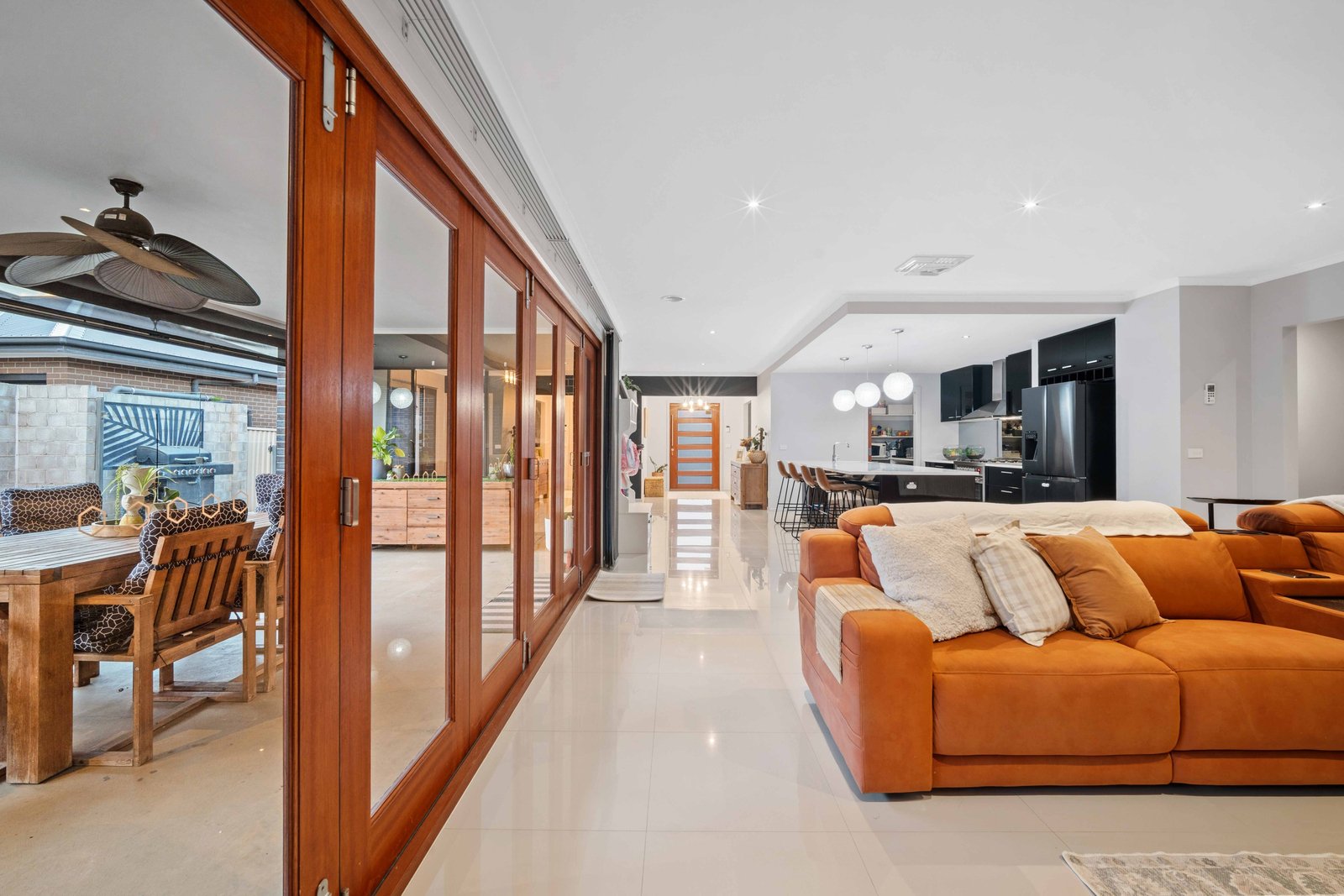 Comfort is assured year round with gas central heating and evaporative cooling. Stacker doors open to a large undercover alfresco area, the perfect setting for family barbecues or relaxing with friends.