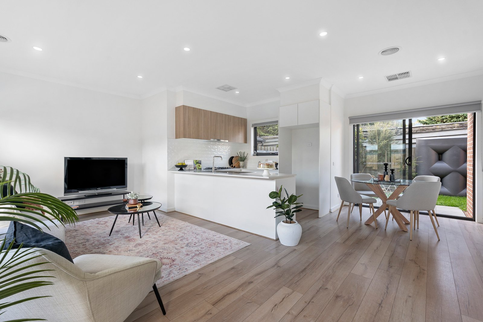 Situated just minutes from stunning stretches of pristine coastline, this beautifully appointed 2-bedroom, 2.5-bathroom sanctuary offers contemporary luxury with the quiet appeal of a no through road. You’ll love the lifestyle convenience, being perfectly positioned to enjoy beachside cafes and the soft white sand, along with sports reserves, walking trails and schools within easy reach. One of just three boutique residences, this home has been meticulously crafted for modern comfort. With double-glazed windows, ducted heating and evaporative cooling, a full laundry, under-stair storage and internal access to the remote garage – this haven surrounds you in style. Infused with natural light, open-plan living and the kitchen form the heart of this home, seamlessly flowing to a sun-drenched alfresco garden courtyard, ideal for both entertaining and pets. The sleek kitchen is adorned with Westinghouse stainless steel appliances, stone surfaces and oak accents, complemented by a meals area and breakfast bench. Both bedrooms are peacefully set upstairs, the master bedroom with a luxurious ensuite and walk-in robe, the spacious second bedroom with built-in robes. The main bathroom is enhanced by a separate shower and bath, while a guest powder room resides downstairs. Situated moments from Seaford’s Beach Café, iconic pier and shopping village, Frankston's vibrant waterfront precinct. Train stations, Belvedere Park Primary School, St Anne’s Primary School and East Seaford Reserve are all nearby.