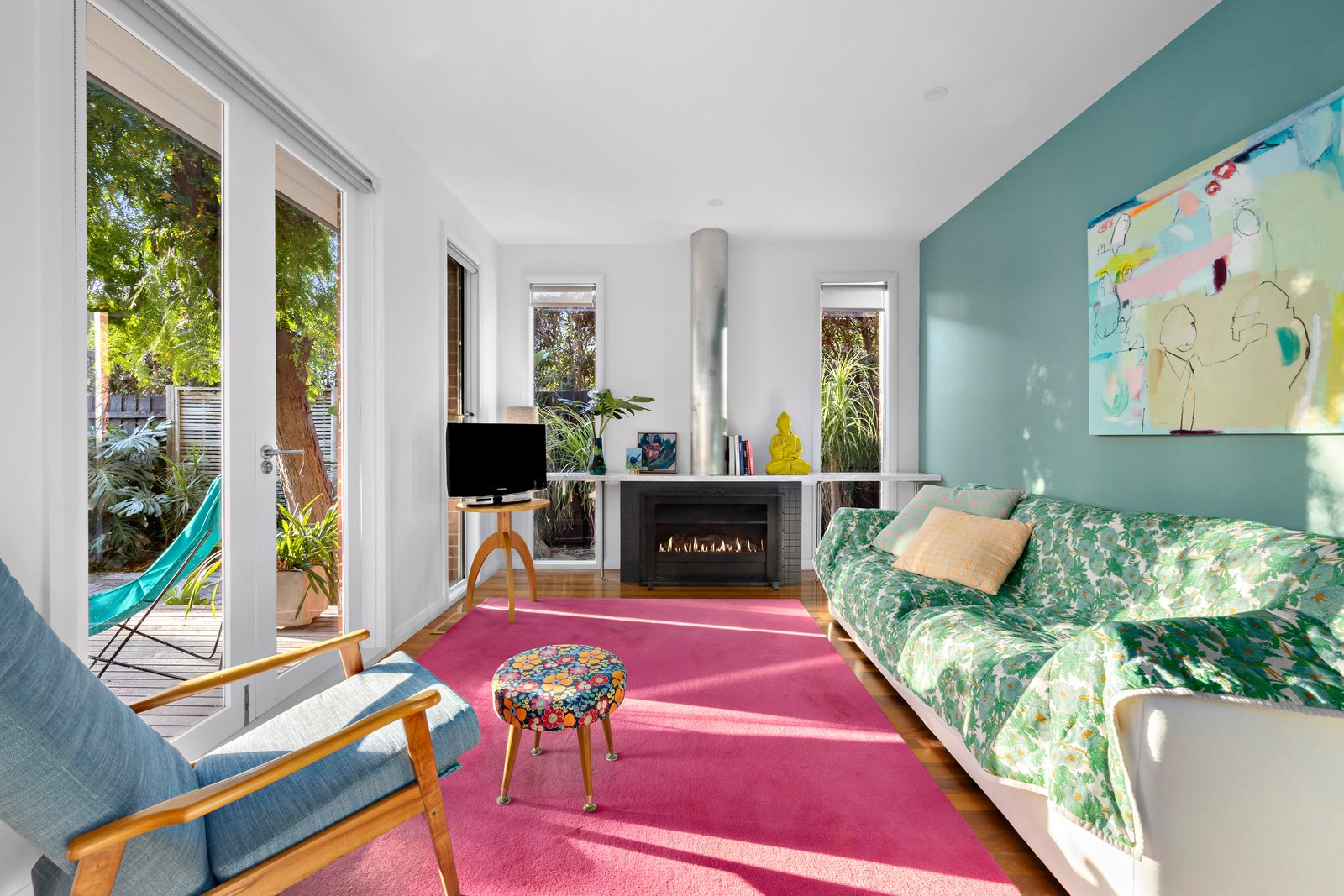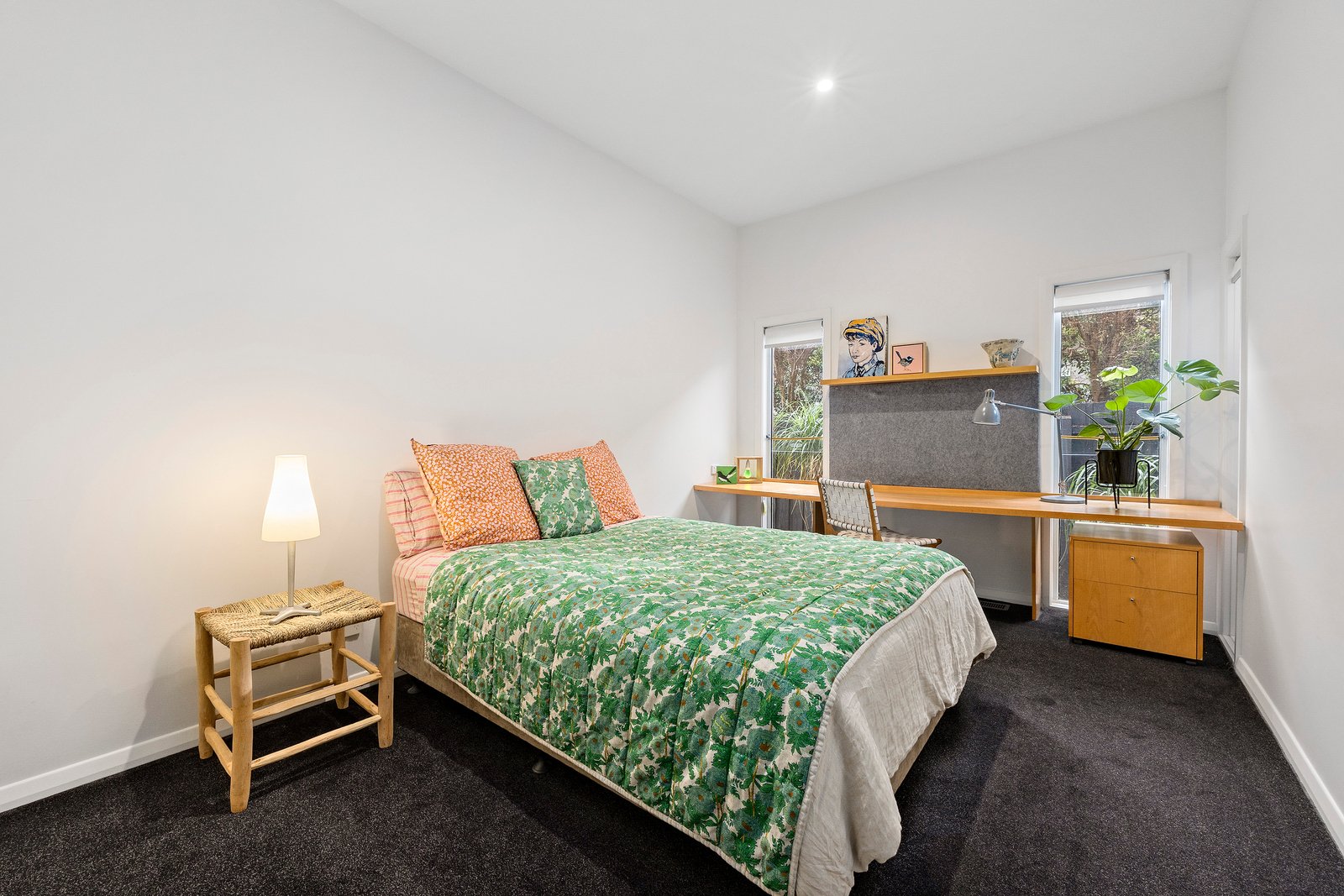 French doors connect the interiors to a north-west facing outdoor haven. A sun-drenched deck steps down to landscaped gardens with a solar-heated, salt-chlorinated pool and built-in BBQ the perfect backdrop for summer gatherings. The front garden has been thoughtfully landscaped with native plantings, enhancing the home’s street appeal.