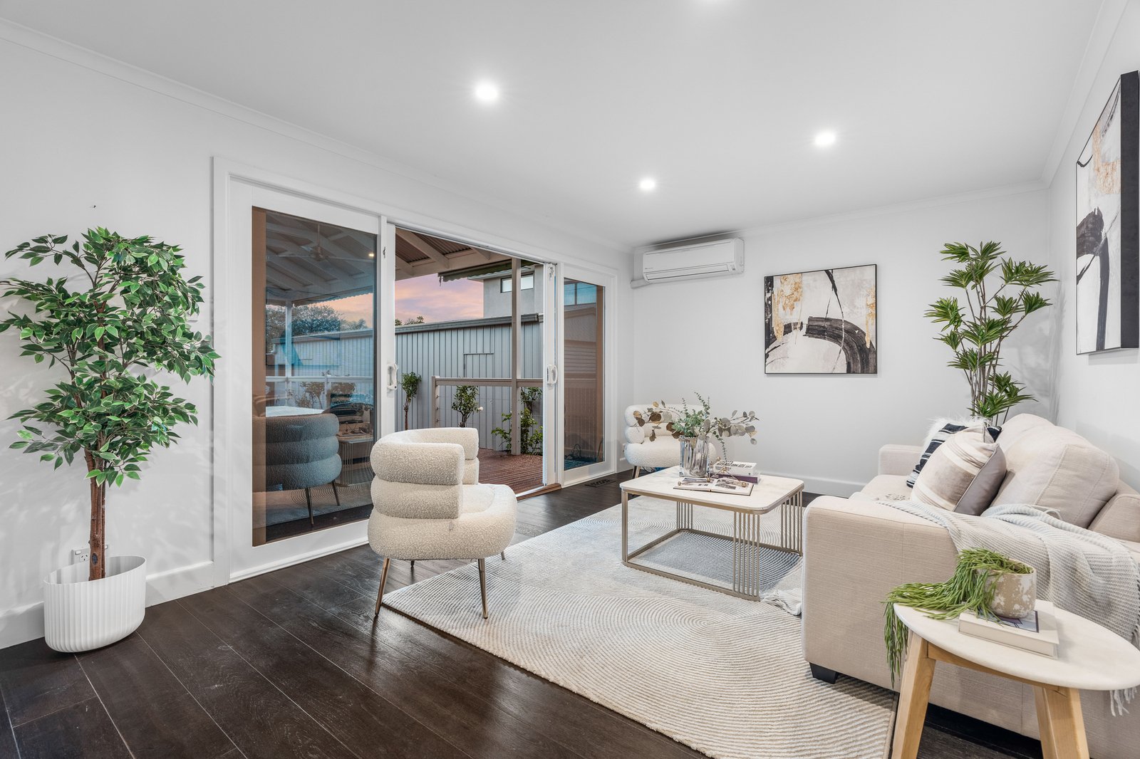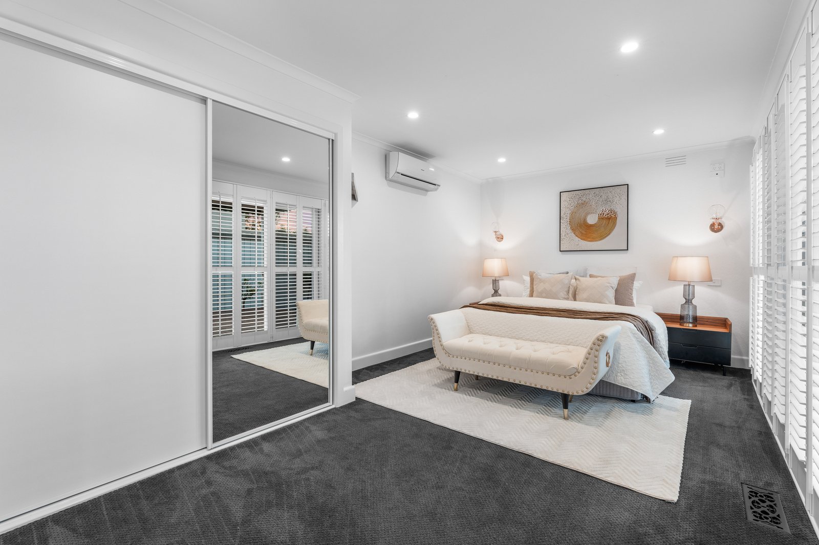 Curated with timeless touches including elegant plantation-shutters, sleek stone benchtops and plush charcoal carpets, this recycle-cycle air-conditioned and centrally heated home has high-specification CCTV cameras to maximise security and a high-capacity 32-panel solar system to help minimise costs. Adding to the appeal, the property also features an auto electric gate and a supersized water tank, enhancing both convenience and sustainability. There’s even more outdoors with a paved entertaining area in addition to the al fresco zone, and possible 2 car garaging in addition to auto-gated parking out front.