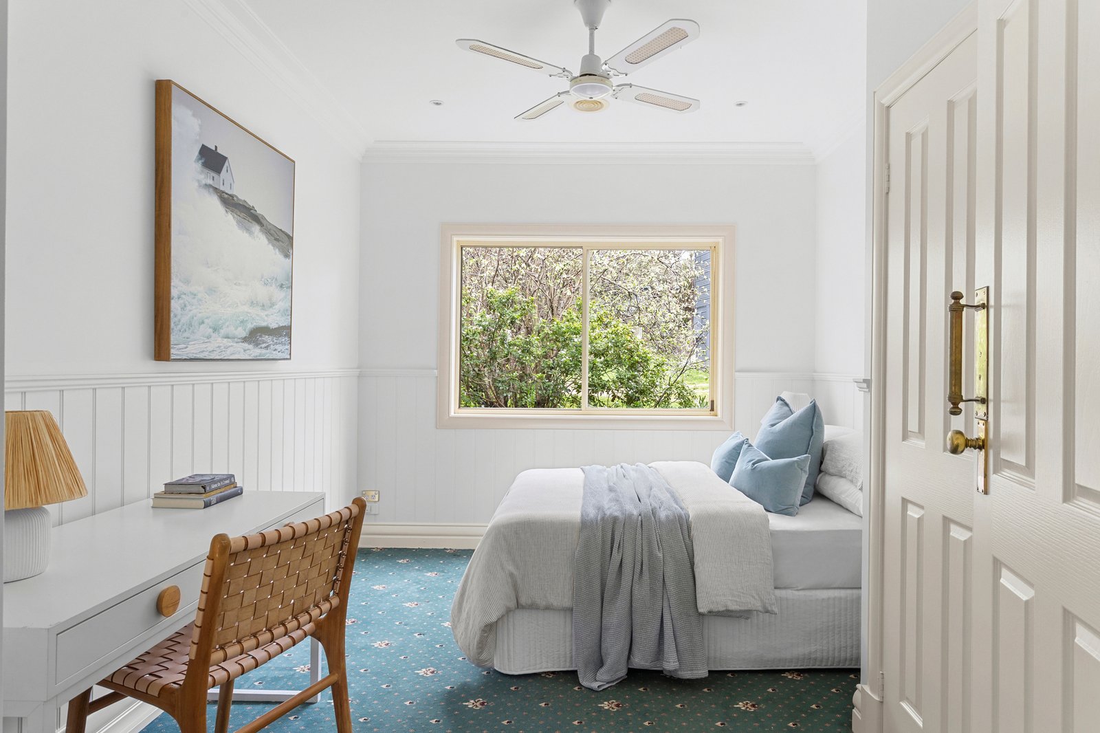 Accommodation is thoughtfully arranged, the front-facing main suite with a trio of windows drawing in natural light, together with a large walk-in robe and ensuite. Two additional robed bedrooms are set along a dedicated wing with access to the bathroom, separate WC and laundry, while a fourth bedroom adapts with ease as a guest retreat or study.