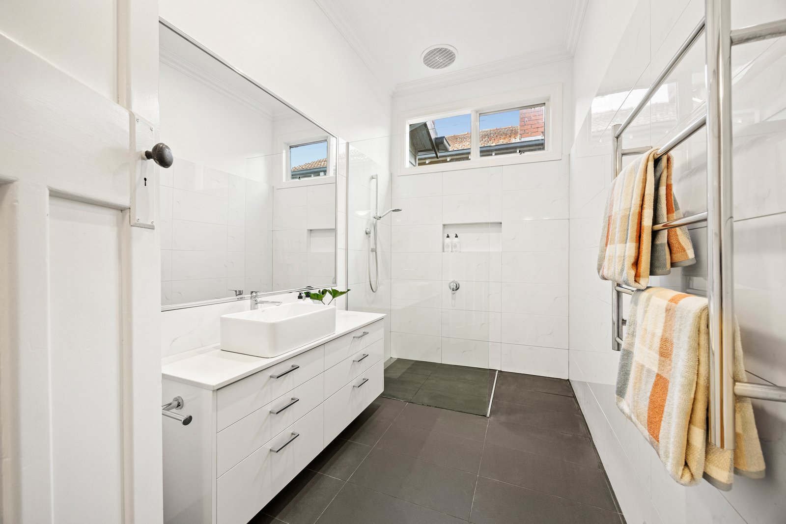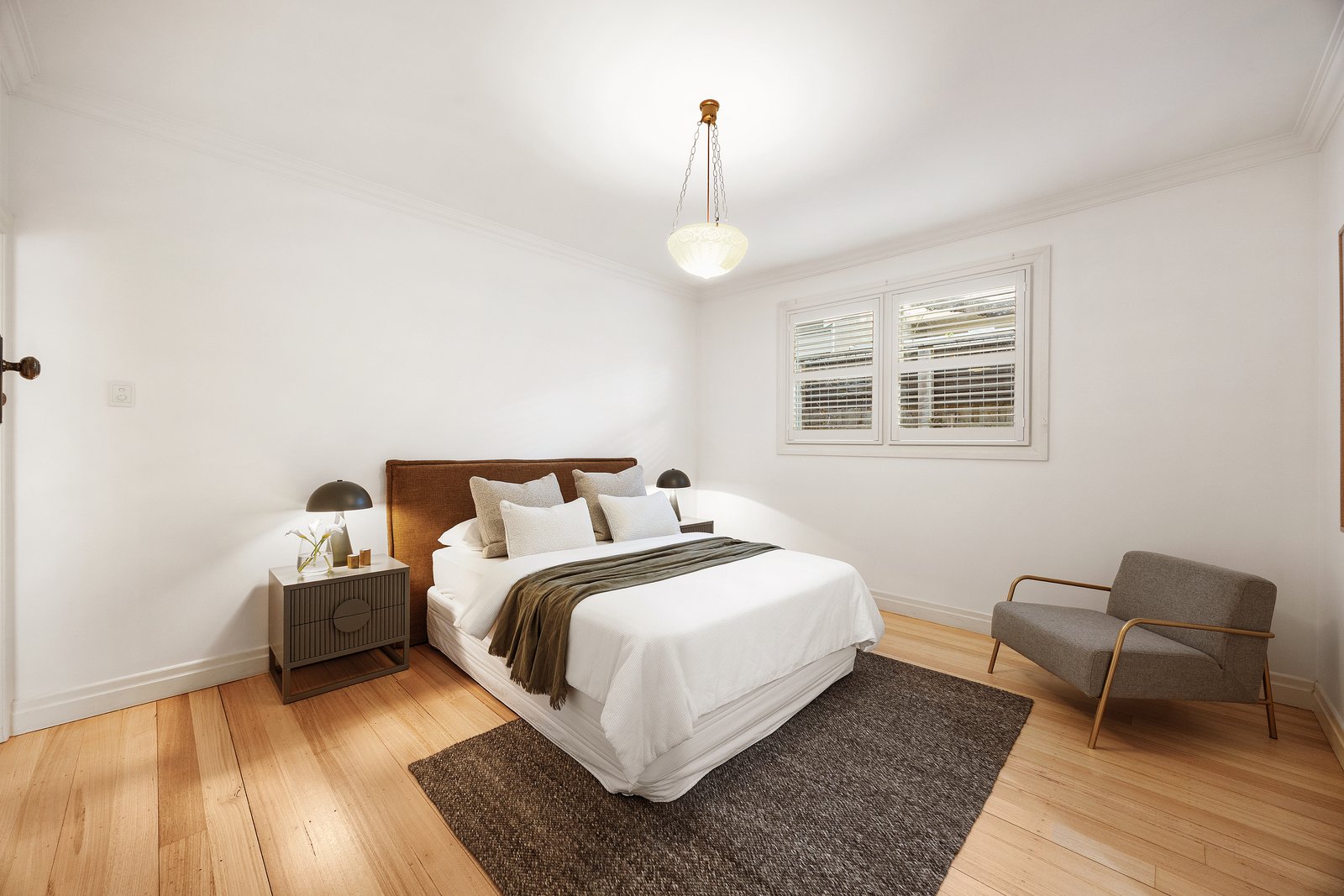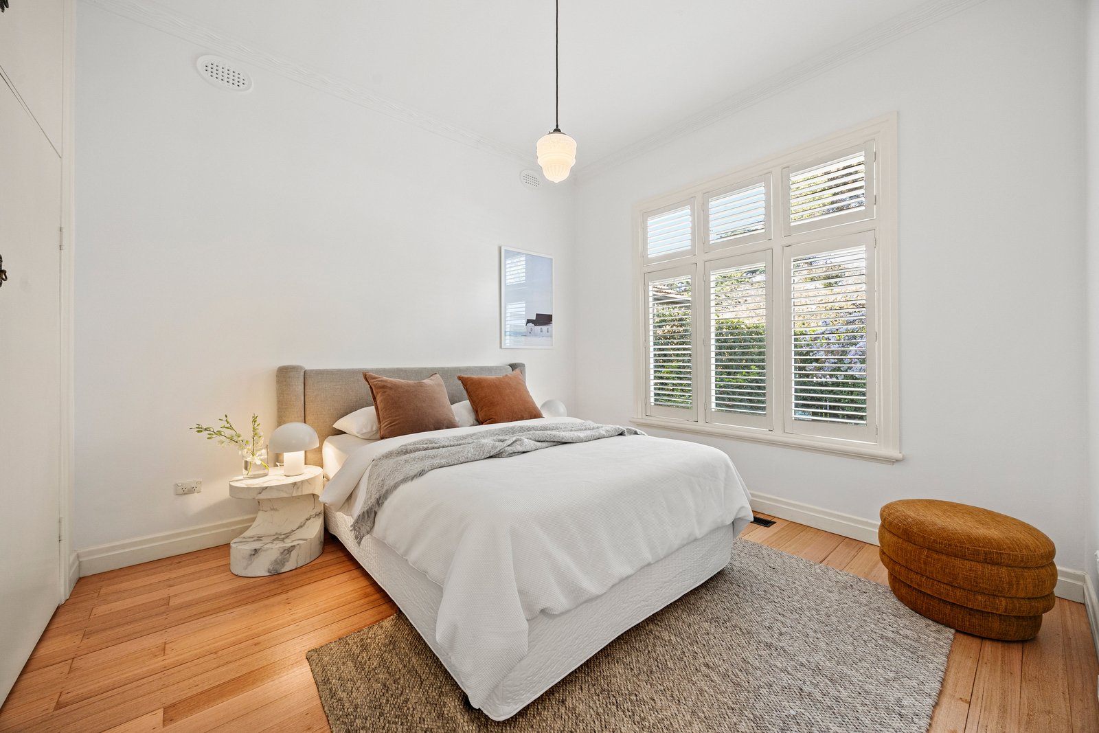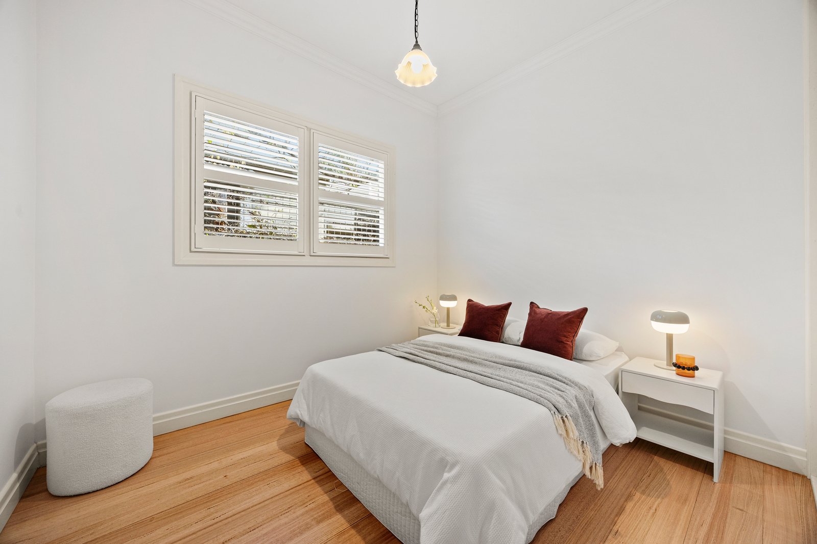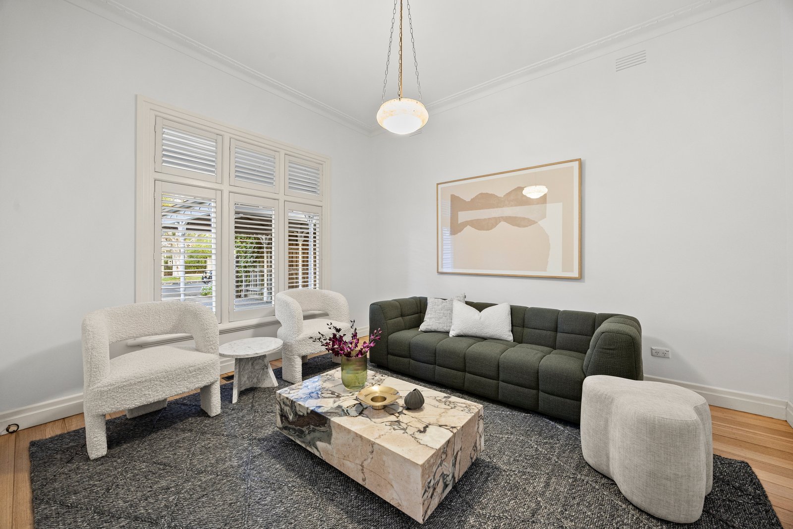 Light hardwood floors, stone benchtops, designer bathrooms and plantation shutters bring modern luxury to the home’s enduring charm, complemented by central heating, reverse-cycle air conditioning, and a mix of built-in and walk-in robes for family functionality.