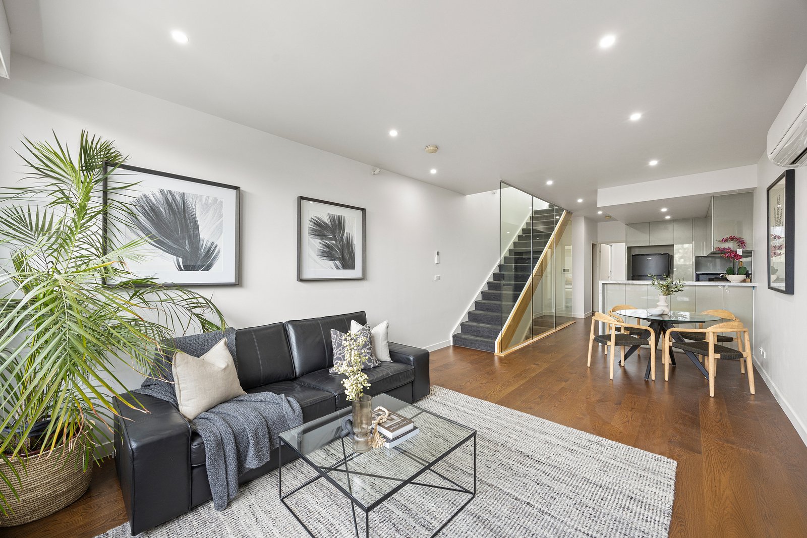 Moments from the foreshore, this three bedroom, two bathroom residence within the coveted Pavilion Terraces is a masterclass in contemporary beachside living.