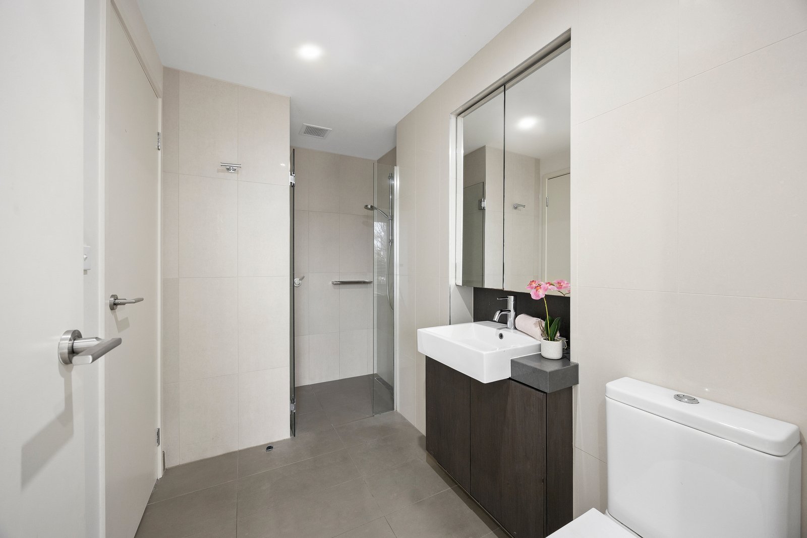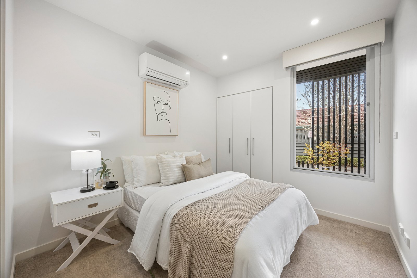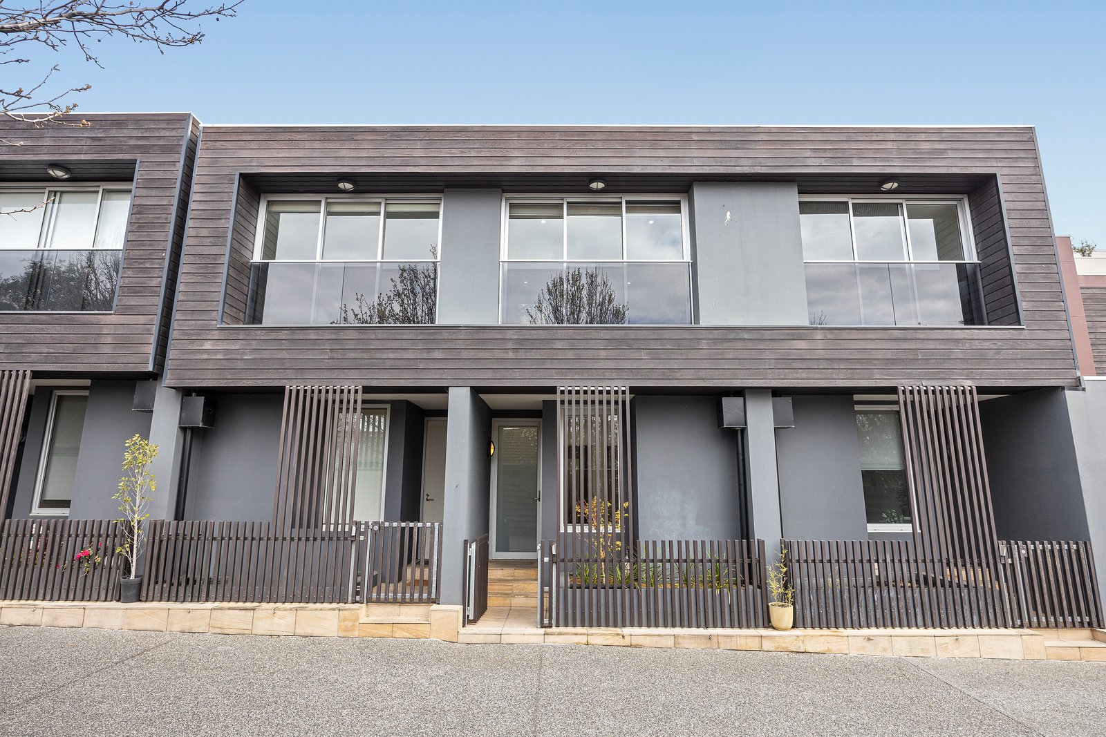 All bedrooms are appointed with built-in robes. The rear ground-floor master suite enjoys a sleek ensuite, while a second bedroom on this level offers access to a two-way bathroom. Upstairs, a versatile third bedroom is ideal for guests, family, or a dedicated work-from-home space.
