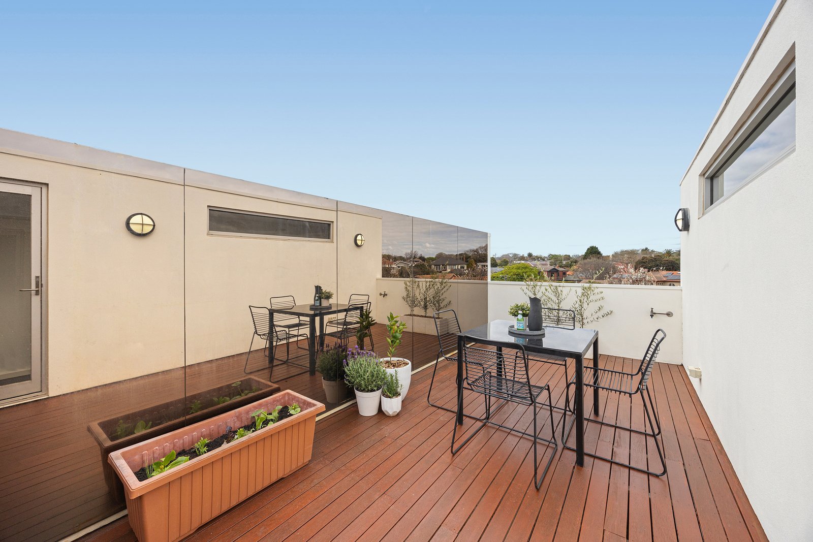 A rooftop terrace crowns the home, a sun-drenched sanctuary for morning coffees, lazy barbeque lunches, or evening drinks beneath panoramic neighbourhood views.