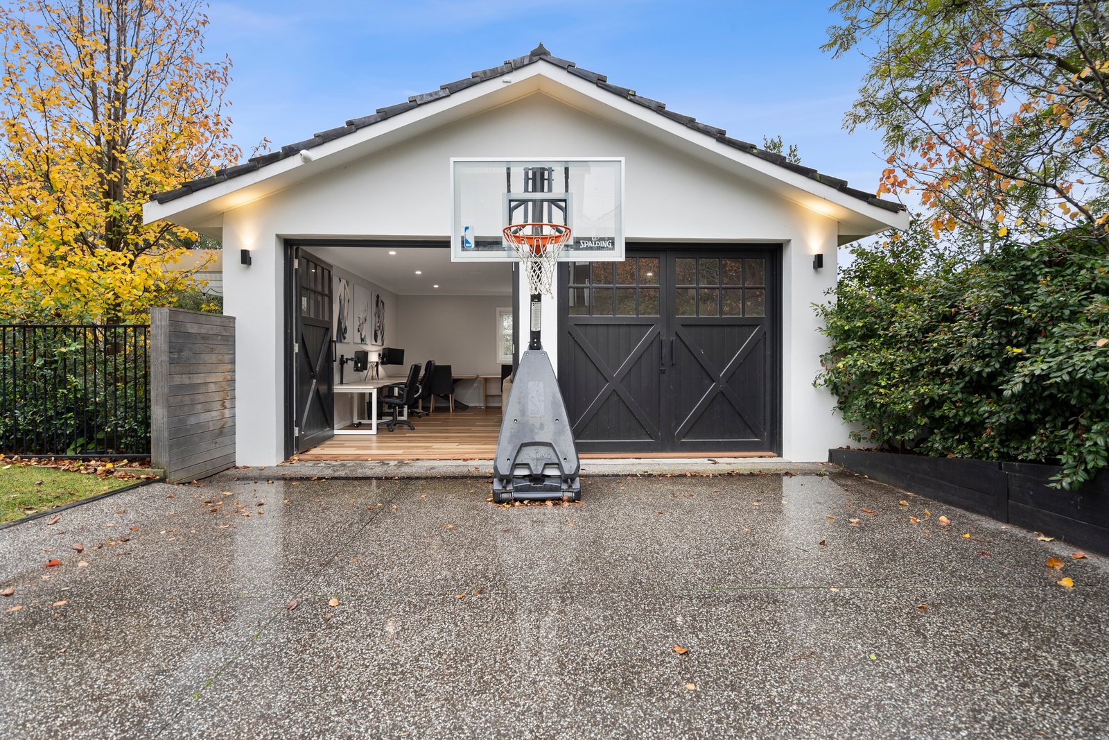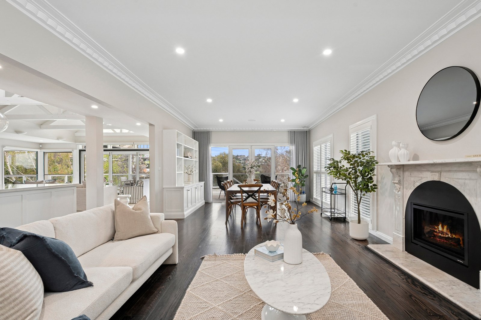 Accommodation is thoughtfully arranged across a single level, featuring four generous bedrooms, each with leafy garden outlooks. The main suite is a private retreat overlooking the backyard, complete with built-in robes and a spacious ensuite, while the remaining bedrooms are well serviced by a beautifully appointed family bathroom and additional powder room. A dedicated study provides the perfect home office, while a versatile family room or fifth bedroom adds flexibility to the layout. The separate lounge, equipped with a gas fireplace, offers a warm and inviting space for relaxed evenings, and the converted garage has been transformed into a rumpus, gym or retreat, opening directly to a paved courtyard.