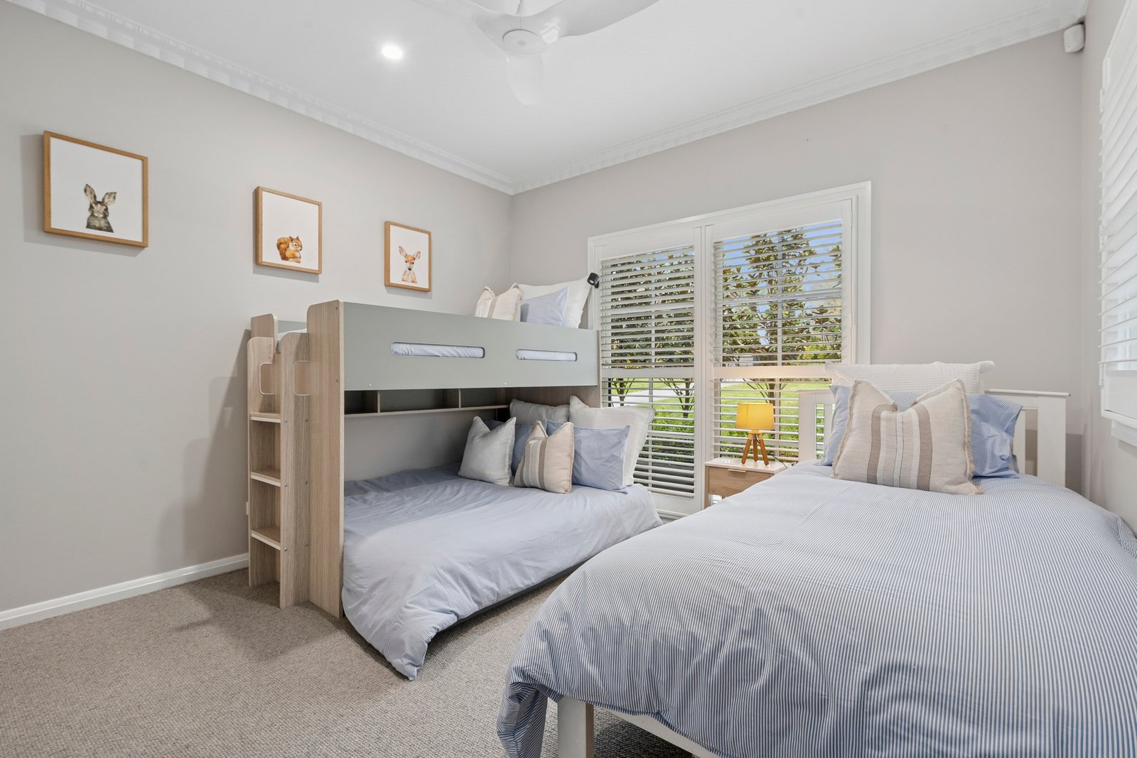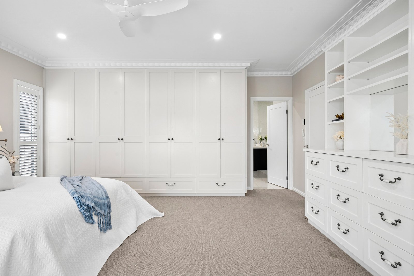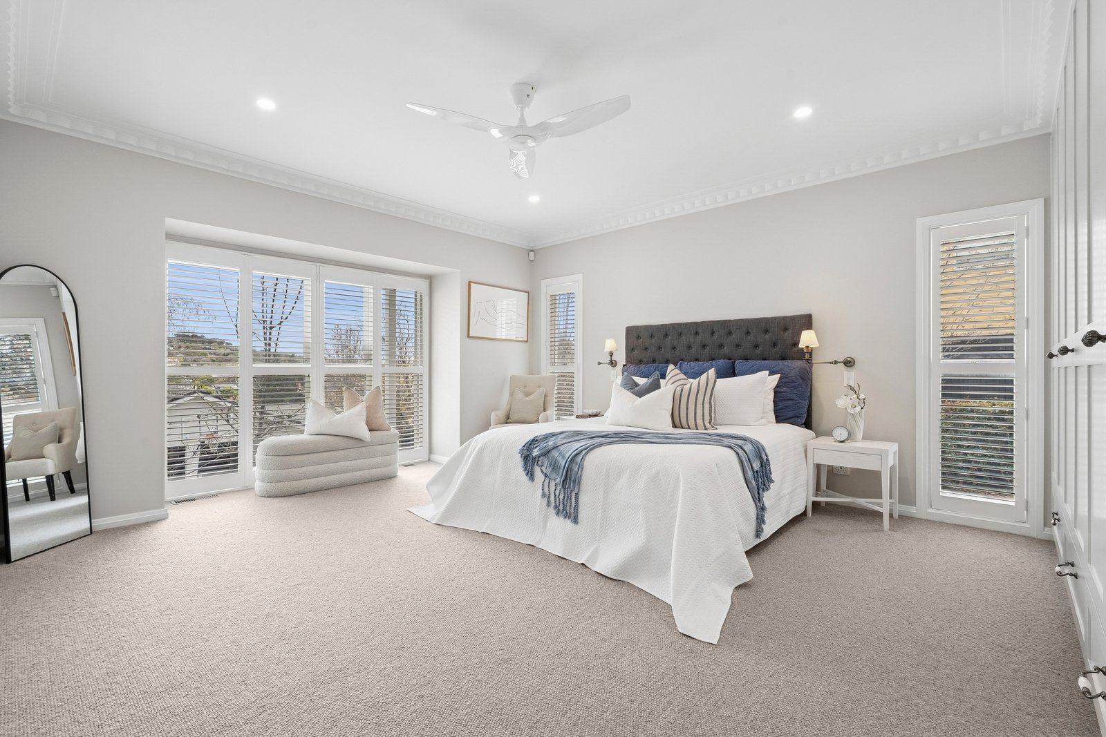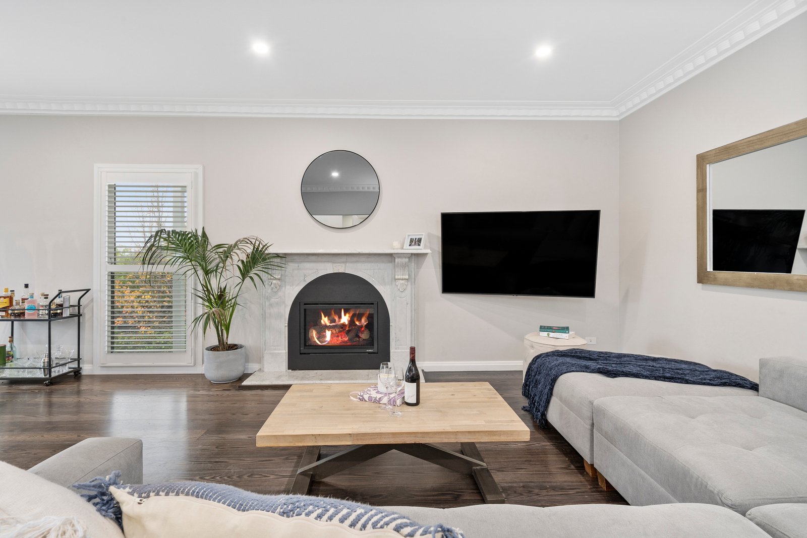 Crafted by one of Geelong’s most respected builders, every detail reflects uncompromising quality. A bluestone entry path leads to striking interiors lined with American oak floors and finished with timeless plantation shutters. Modern comforts include zoned climate control, underfloor heating and heated towel rails in both bathrooms, and an advanced security system with electronic access and cameras, ensuring both luxury and peace of mind.