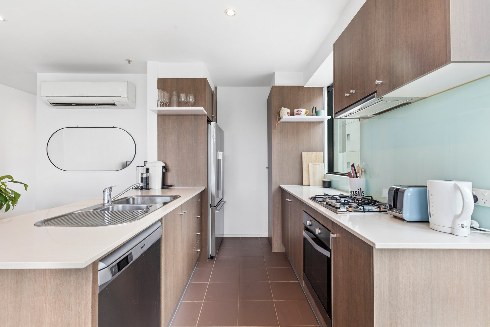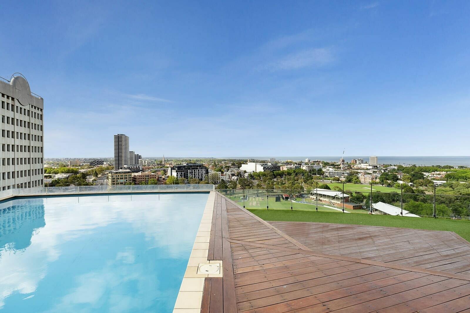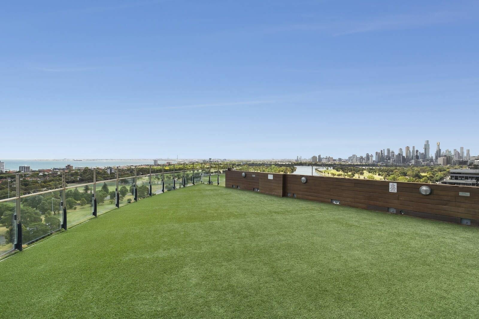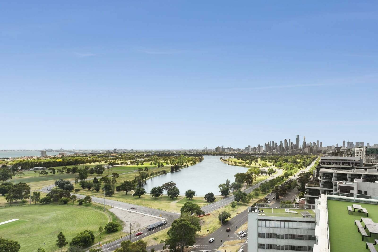 This fully furnished two-bedroom apartment with two car spaces offers stunning views of Albert Park Lake from the rooftop and resort-style amenities.