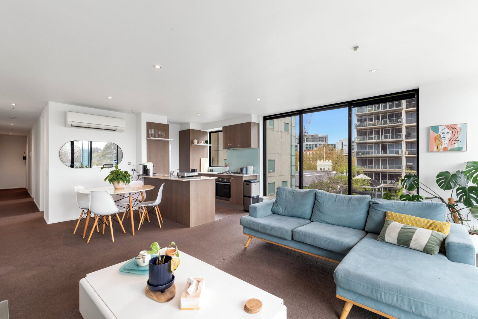 Located on the 4th floor of the iconic Mansion building, the apartment features a spacious open-plan living/dining area with floor-to-ceiling windows, reverse-cycle heating/cooling, a study nook and a private balcony perfect for entertaining. The modern kitchen includes benchtop space, stainless steel appliances (including dishwasher), french door fridge and ample storage.