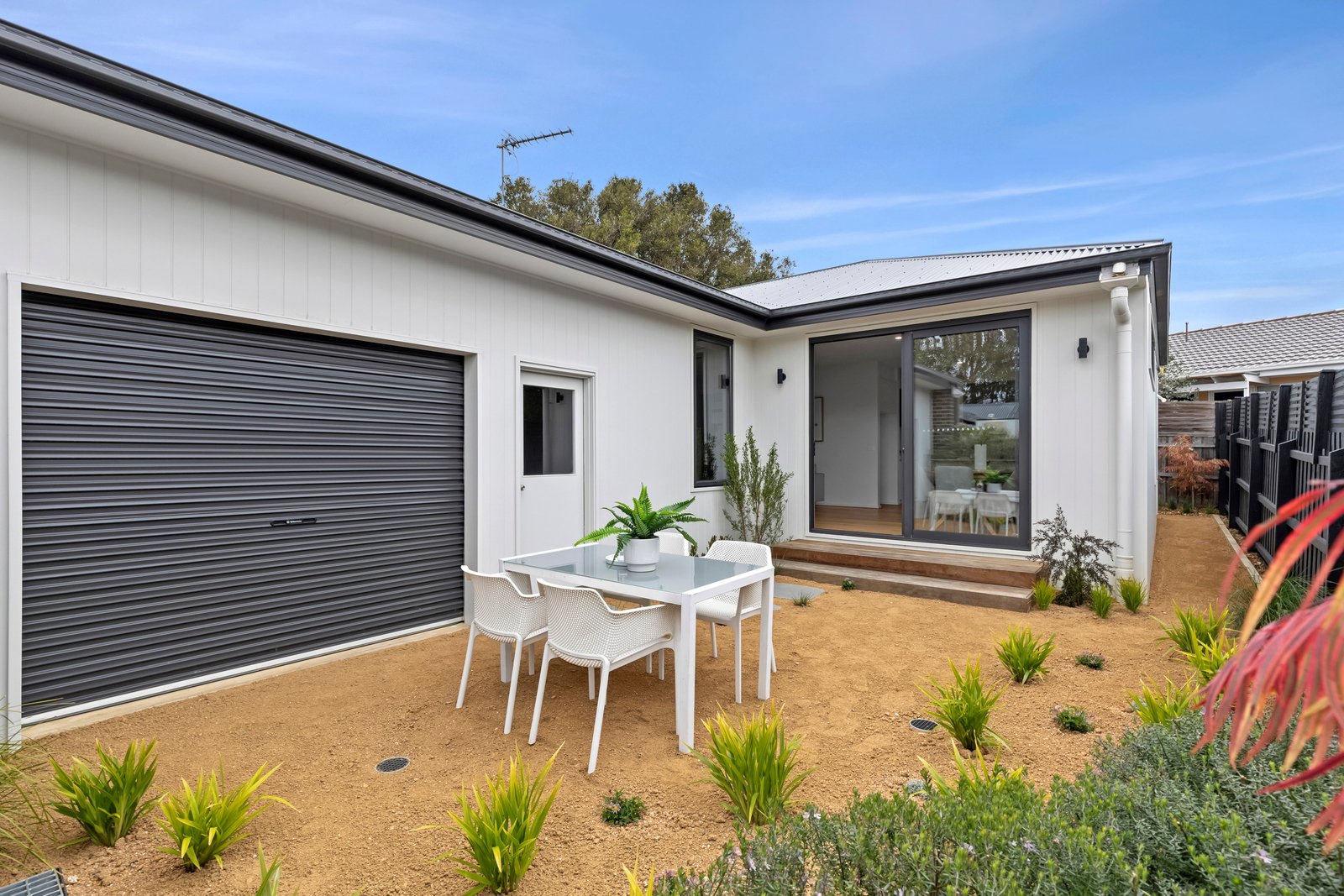 Outside the courtyard enjoys a sunny north facing aspect offering a private space to relax or entertain, with landscaped gardens designed for low maintenance upkeep. The double remote garage includes direct internal entry for secure and convenient access to the home, plus rear pedestrian and roller door access to the courtyard for added functionality.