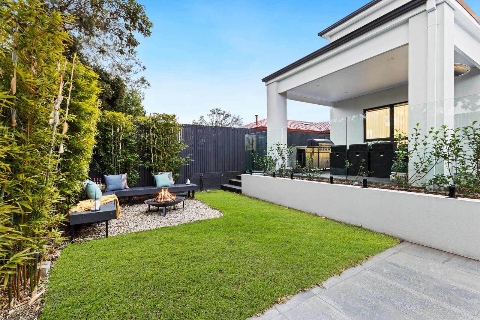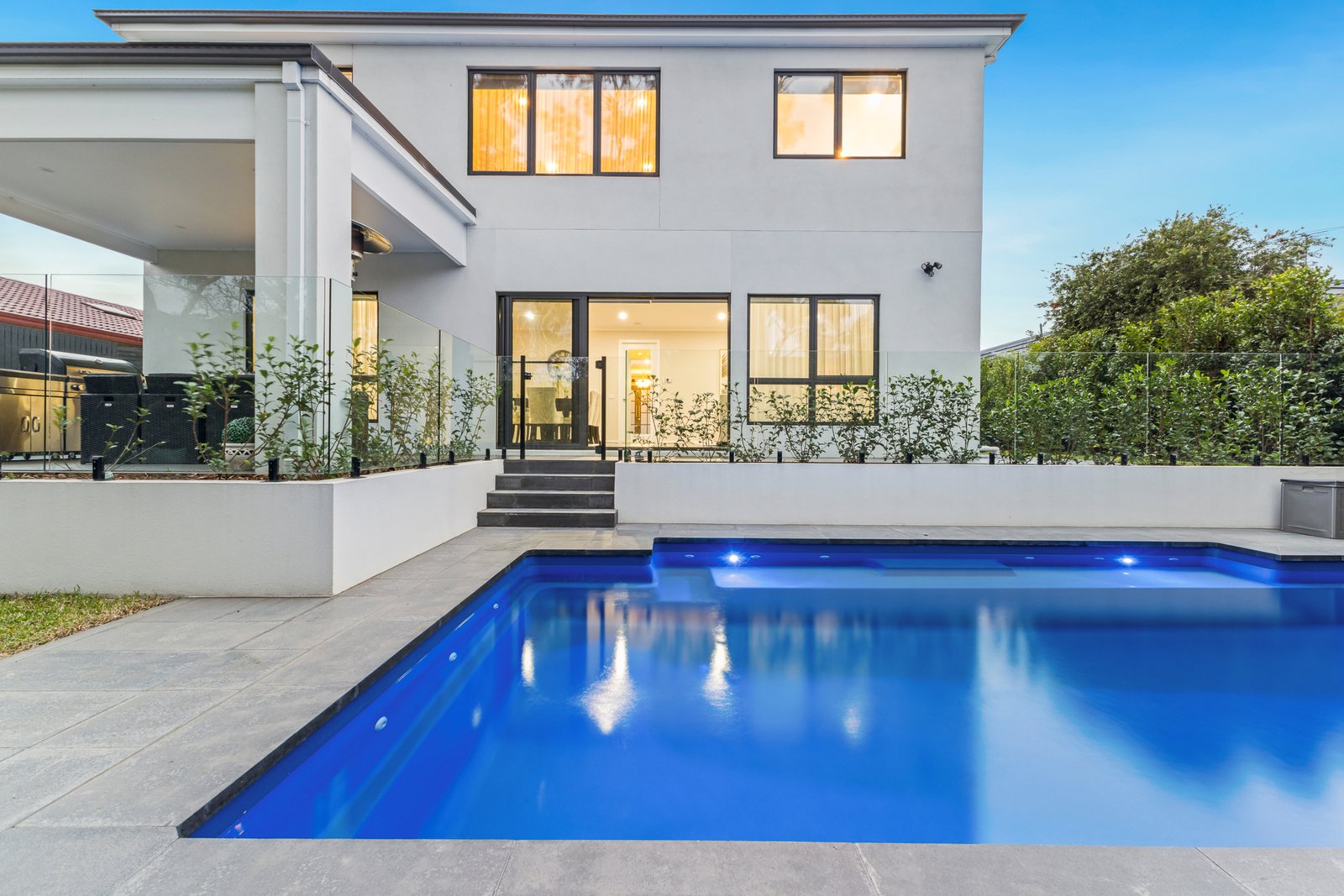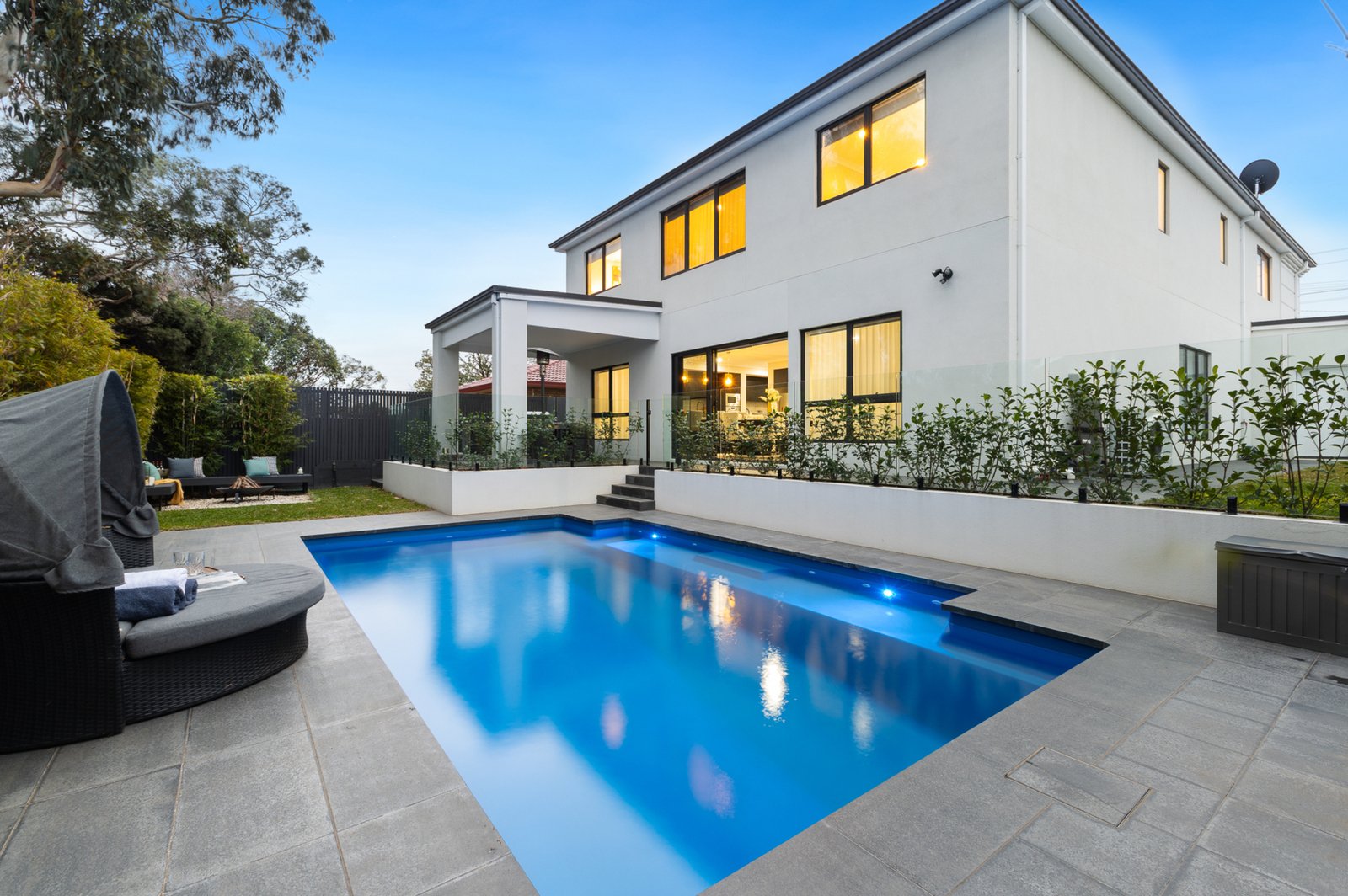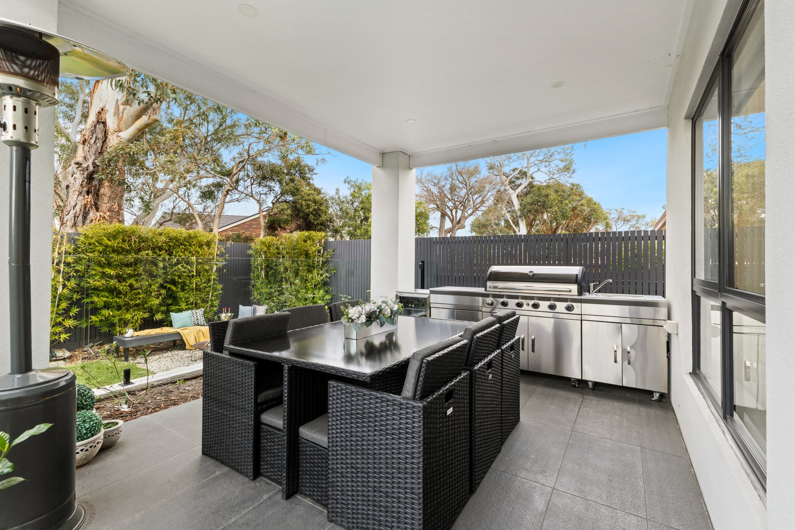 The expansive outdoor provides a private oasis. The entertainment zone features 7.6m heated pool with spa jets, BBQ area and a fire pit. Landscaping delivers privacy along the fence-line and wrapping the pool precinct like a screen of tranquil greenery.