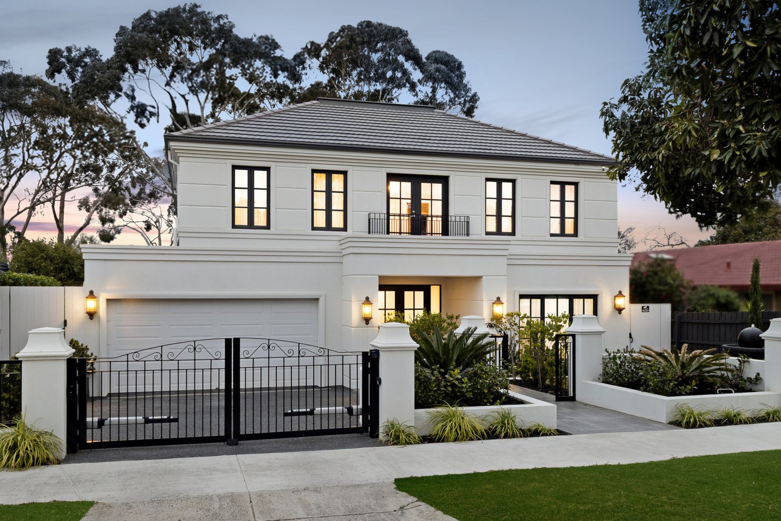 The commanding street appeal begins with a dramatic elegant façade. Privately secured behind automated swing gates, this grand home is framed by exquisite landscaping complete with a feature water fountain and bluestone paving.