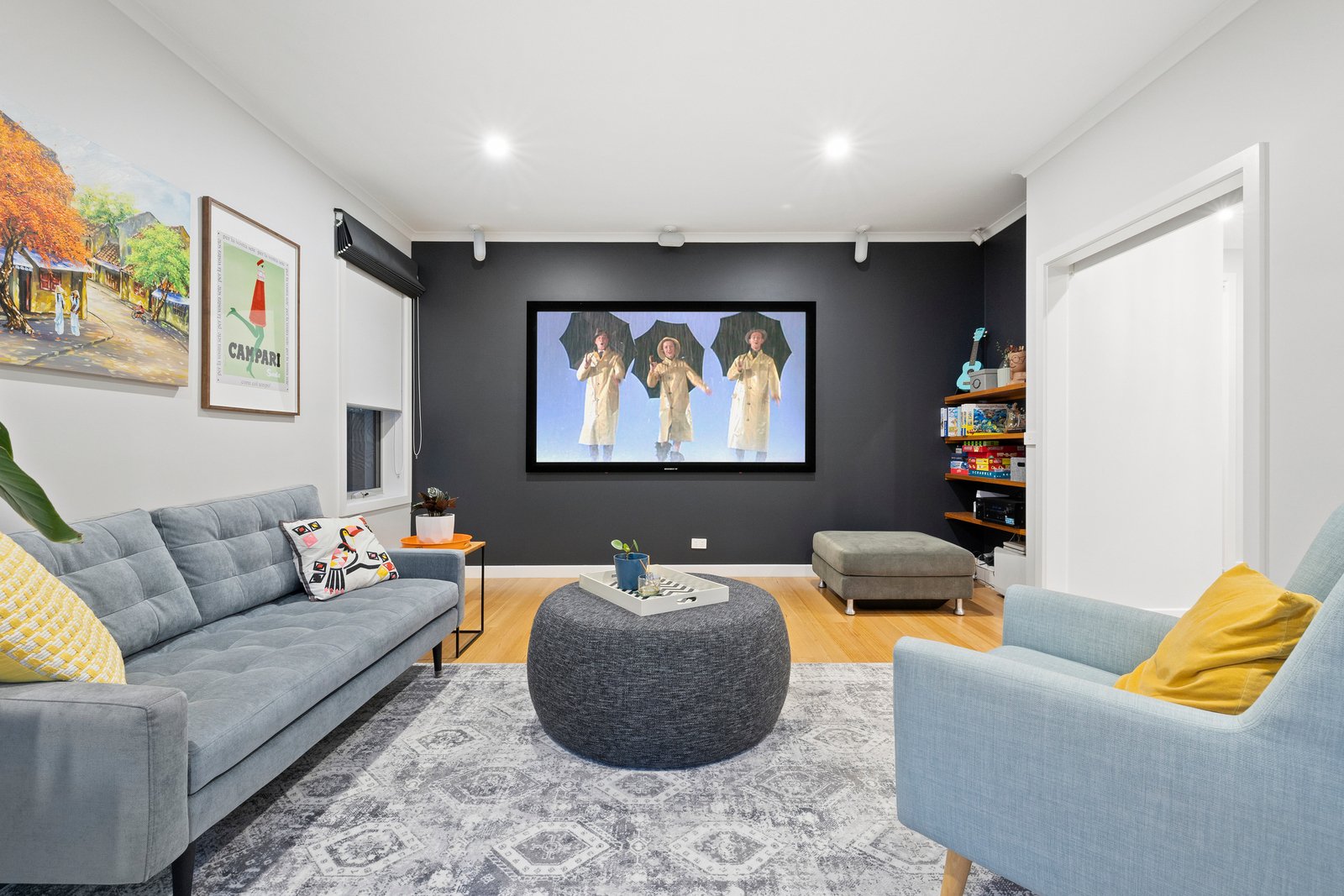Private, secure and instantly appealing, the home’s front garden leads to interiors that have been finished to impress. A sun-swept foyer with light-reflecting mirrored wall and timeless Victorian Ash floors makes a lasting first impression and leads to a versatile lounge/home theatre - the first of multiple living areas that ensure family harmony. Further on, a vast ground-floor living/dining zone is a space designed to bring people together, while an upstairs retreat provides even more invaluable living space. Set under high ceilings with clerestory windows, it features cleverly frosted glass flooring – allowing natural light to cascade through, illuminating both levels.