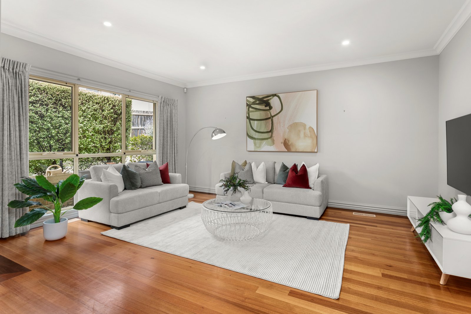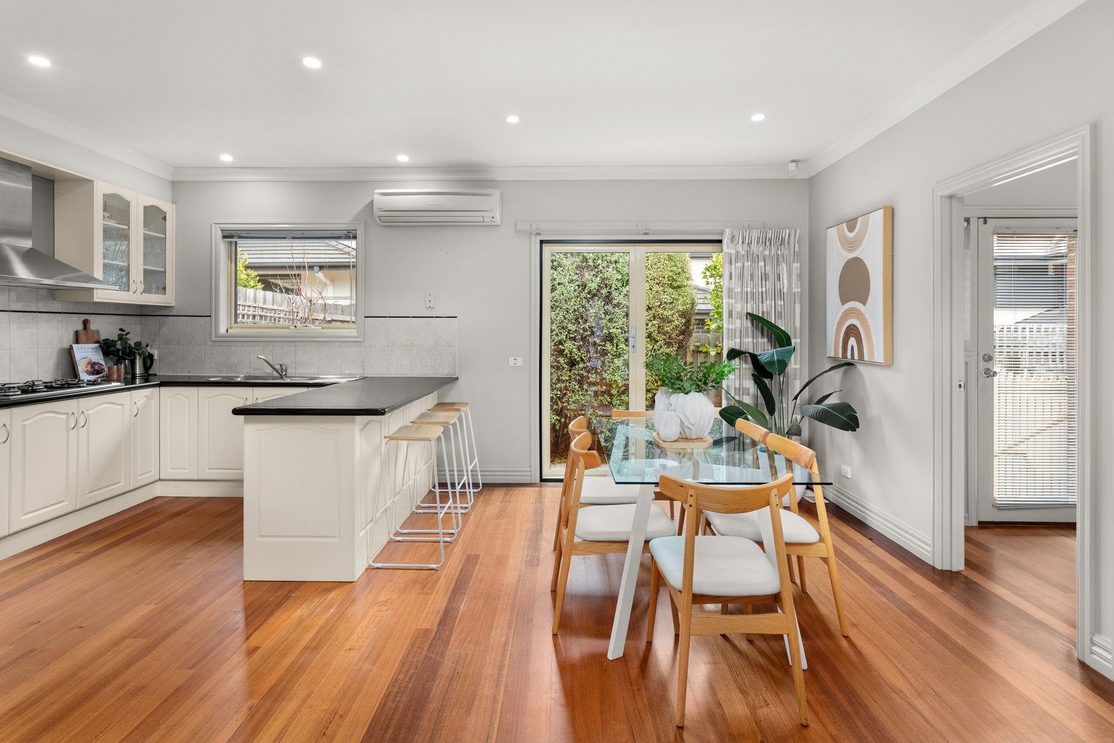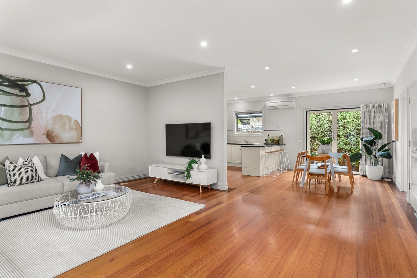 Meticulously maintained and effortlessly stylish, this modern villa promises an enviable single-level lifestyle, just a short stroll from Burwood Village shops and Through Road cafés. Quietly nestled midway in a boutique trio, inviting interiors are underscored by timber floors and reveal a sun-filled, open-plan living/dining area, served by a pristine granite kitchen boasting stainless steel appliances, breakfast bench and ample storage. Designed for seamless everyday living, appreciate the comfort of 2 bright bedrooms (main with ensuite and walk-in robe, second with built-in robe) and an immaculate bathroom, along with ducted heating, split system AC, large laundry, private full-width courtyard, security system and remote single garage. Delivering the perfect balance of peace and convenience ideal for market entrants, downsizers and investors, with parklands, Toorak Road and Riversdale Road trams within a heartbeat, and close to Hartwell Primary, PLC and Deakin University.