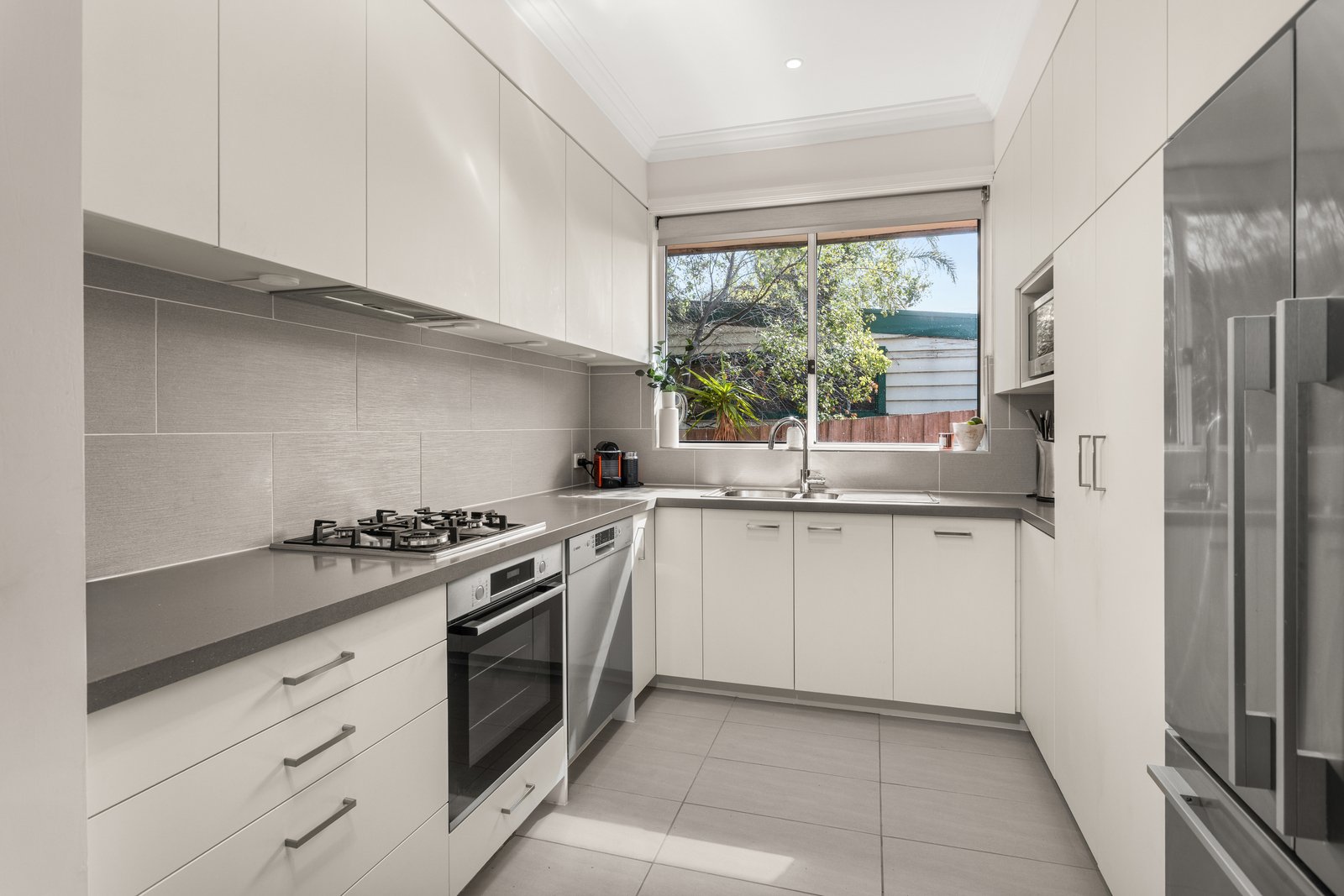 With tall ceilings overhead and hardwood floor underfoot, the home boasts a lounge and dining room that’s flooded with north east light. Wrapped in its own easily managed private garden that’s zoned with a paved patio for care-free entertaining in any weather and served by a tasteful kitchen with stone topped benches, gas cooking, dishwasher and terrific full height storage.