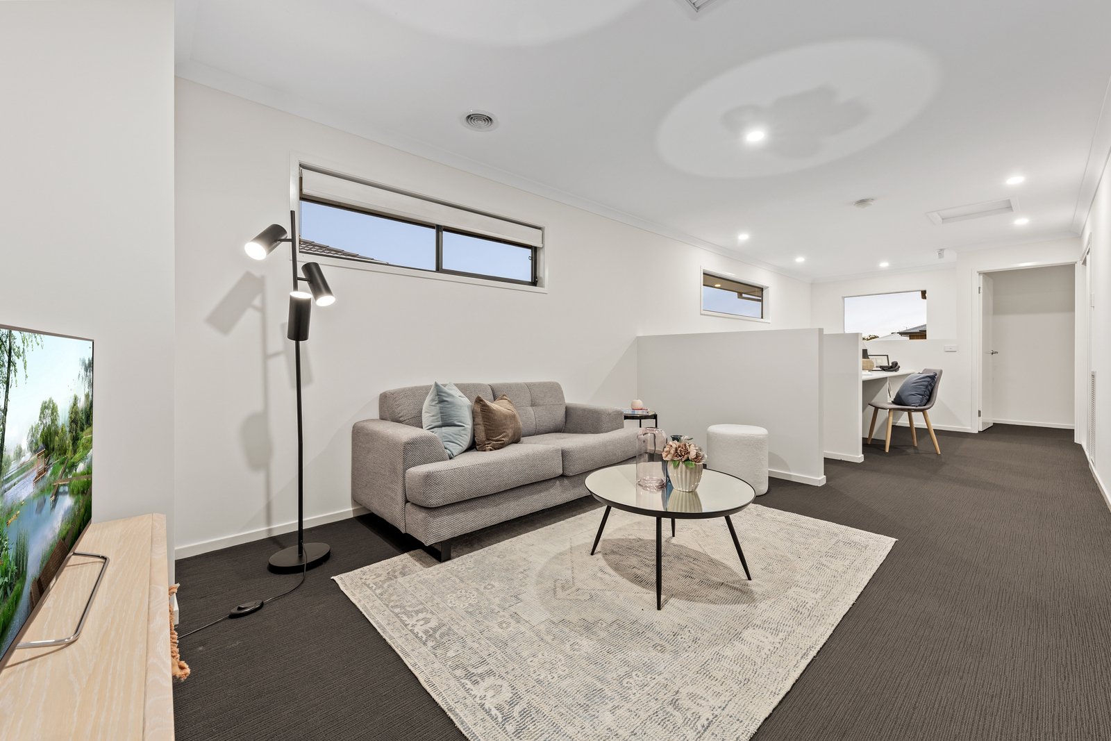 Upstairs, a dedicated study or office area offers the perfect work-from-home setup, and a cozy family retreat provides a quiet space to relax, read, or enjoy time together. The master bedroom features a walk-in robe and private ensuite, while three additional bedrooms with built-in robes are serviced by a central bathroom, ensuring comfort and privacy for the whole family.