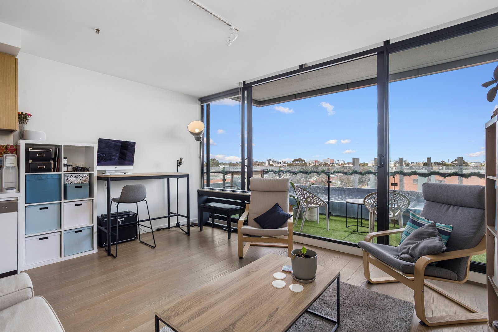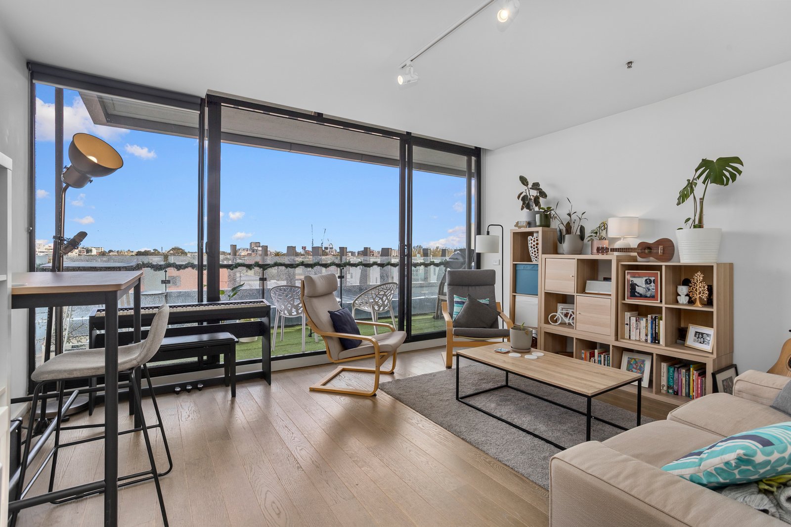 Step into this light-filled living space where floor-to-ceiling windows frame fantastic city views. Large sliding doors seamlessly connect the generous living area to a private balcony, creating perfect indoor/outdoor entertaining and relaxation space.