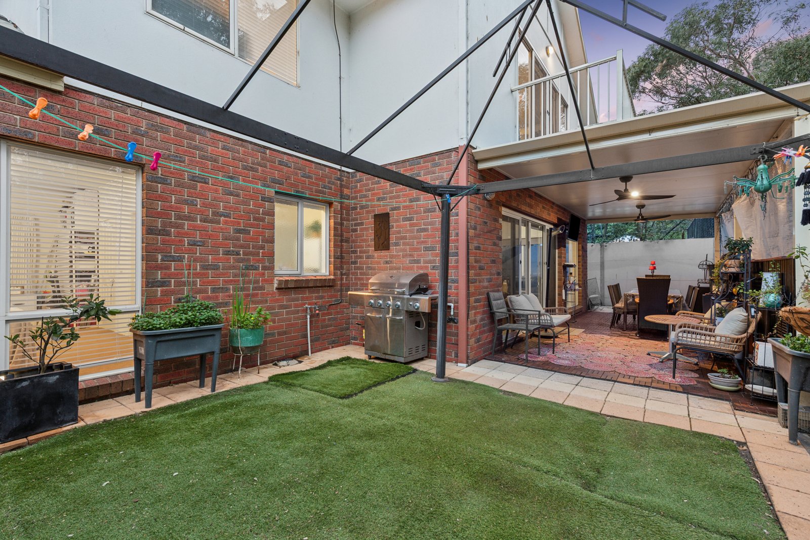 Free from body corporate fees, the two-storey residence features an open plan living/dining area and a well-equipped kitchen with gas cooktop and dishwasher – a zone that spills outside to a private alfresco patio and easy-to-maintain courtyard for effortless open-air enjoyment.
