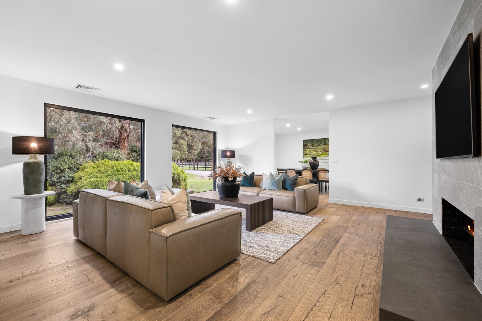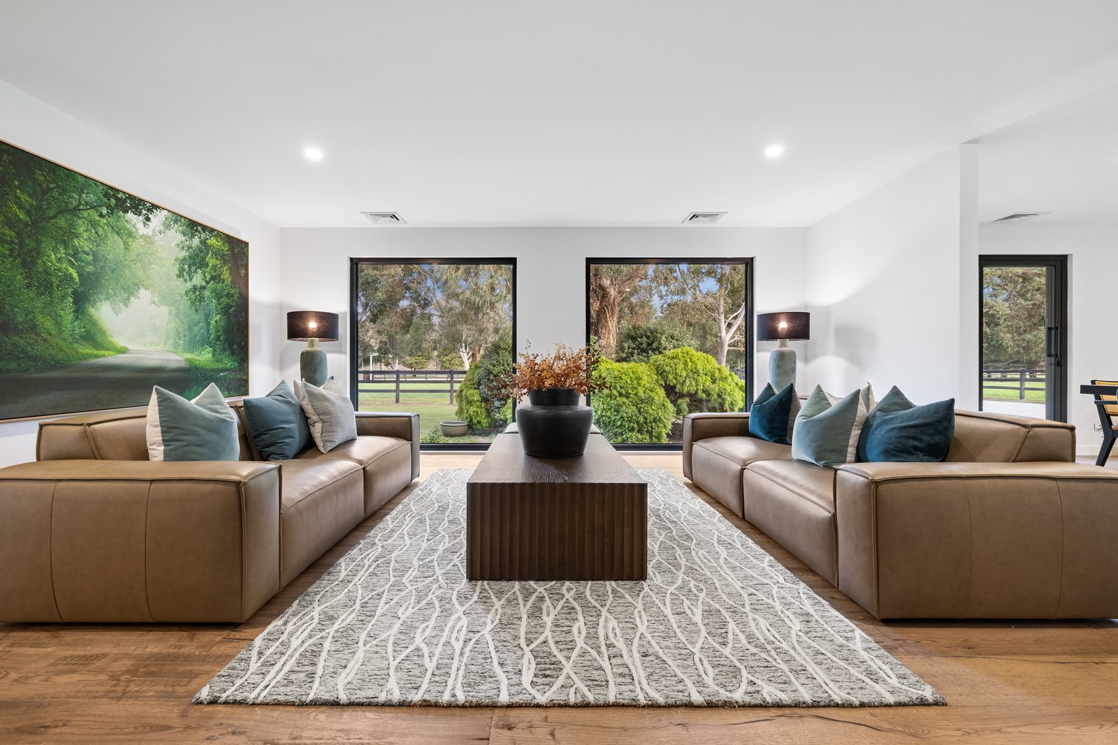 Beyond a secure double-gated entrance and long, tree-lined driveway, discover a home that is ready to be enjoyed – and one that will exceed all expectations. Taking in calming views from every room and with incredible attention to detail on display at every turn, among its many highlights are multiple living areas for family harmony. A tranquil lounge with beautiful picture windows and cosy open fireplace is a room you will simply love spending time in, while a family room with bar & fridge, a generous dining room and sophisticated gourmet kitchen & meals area are all spaces designed to bring loved ones together.