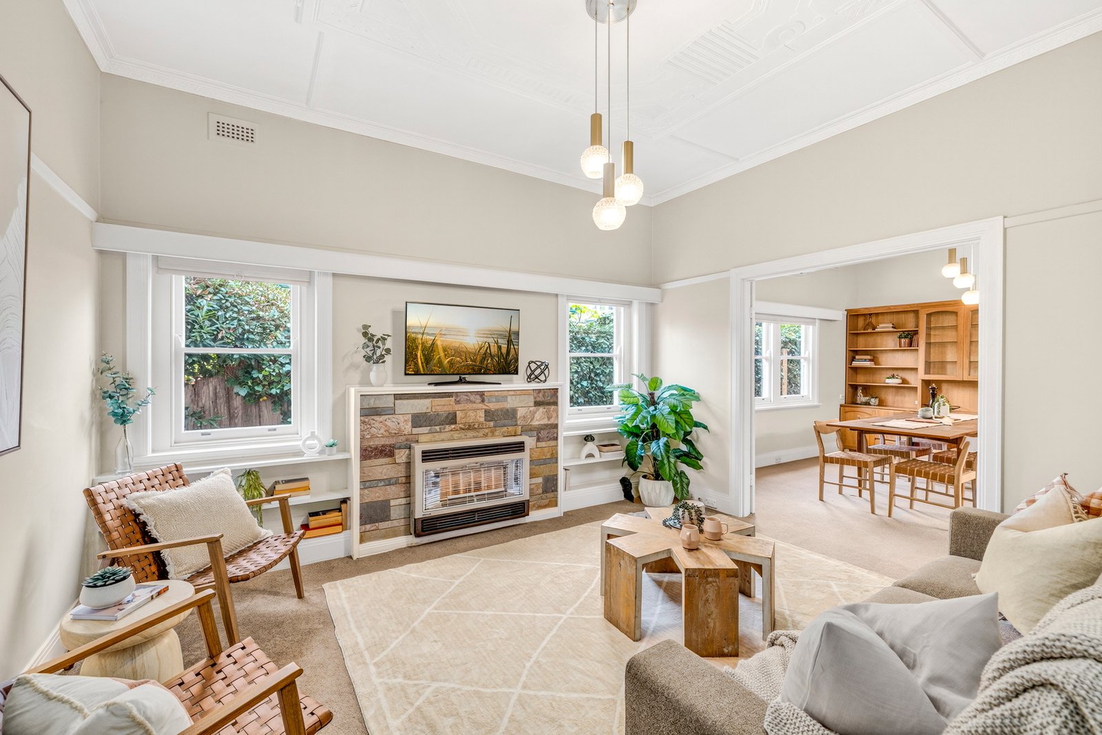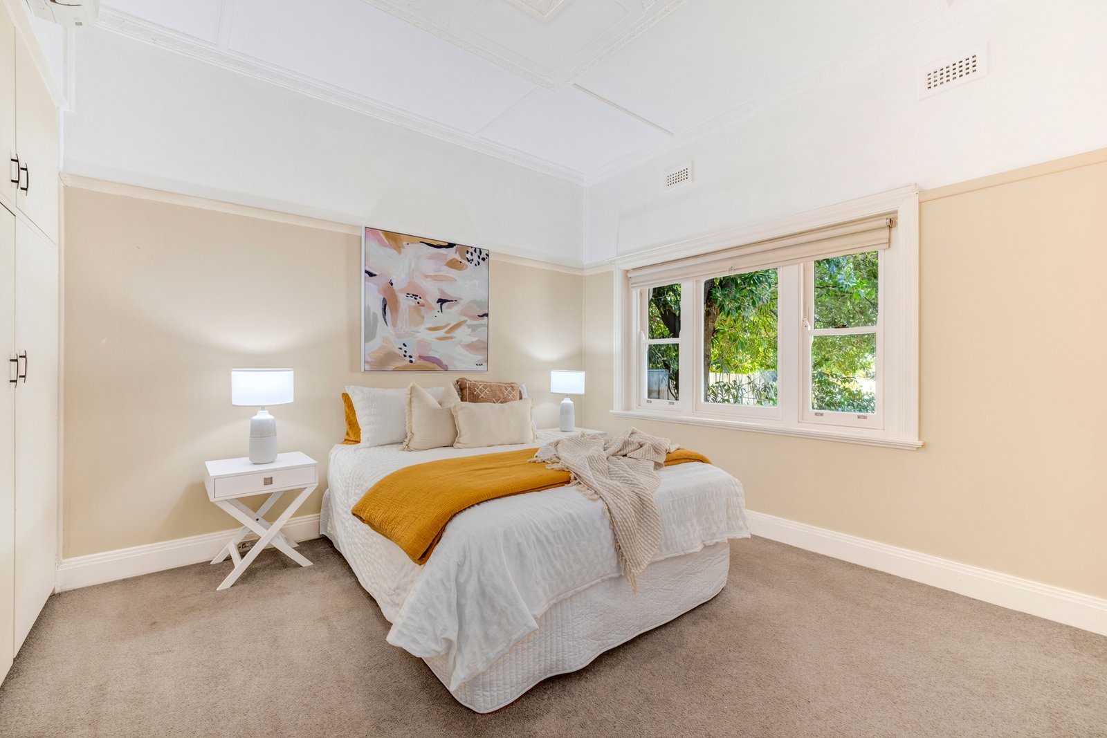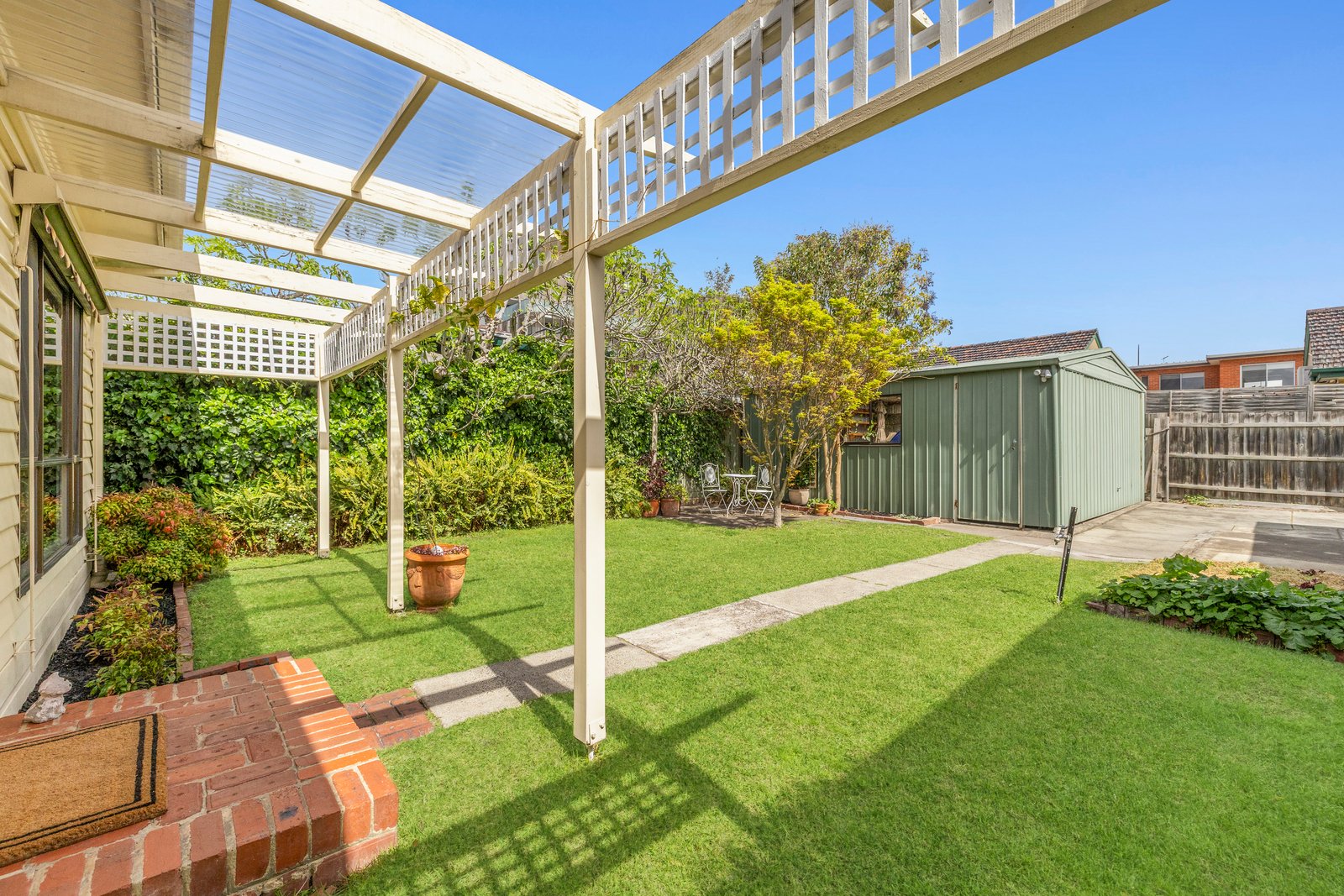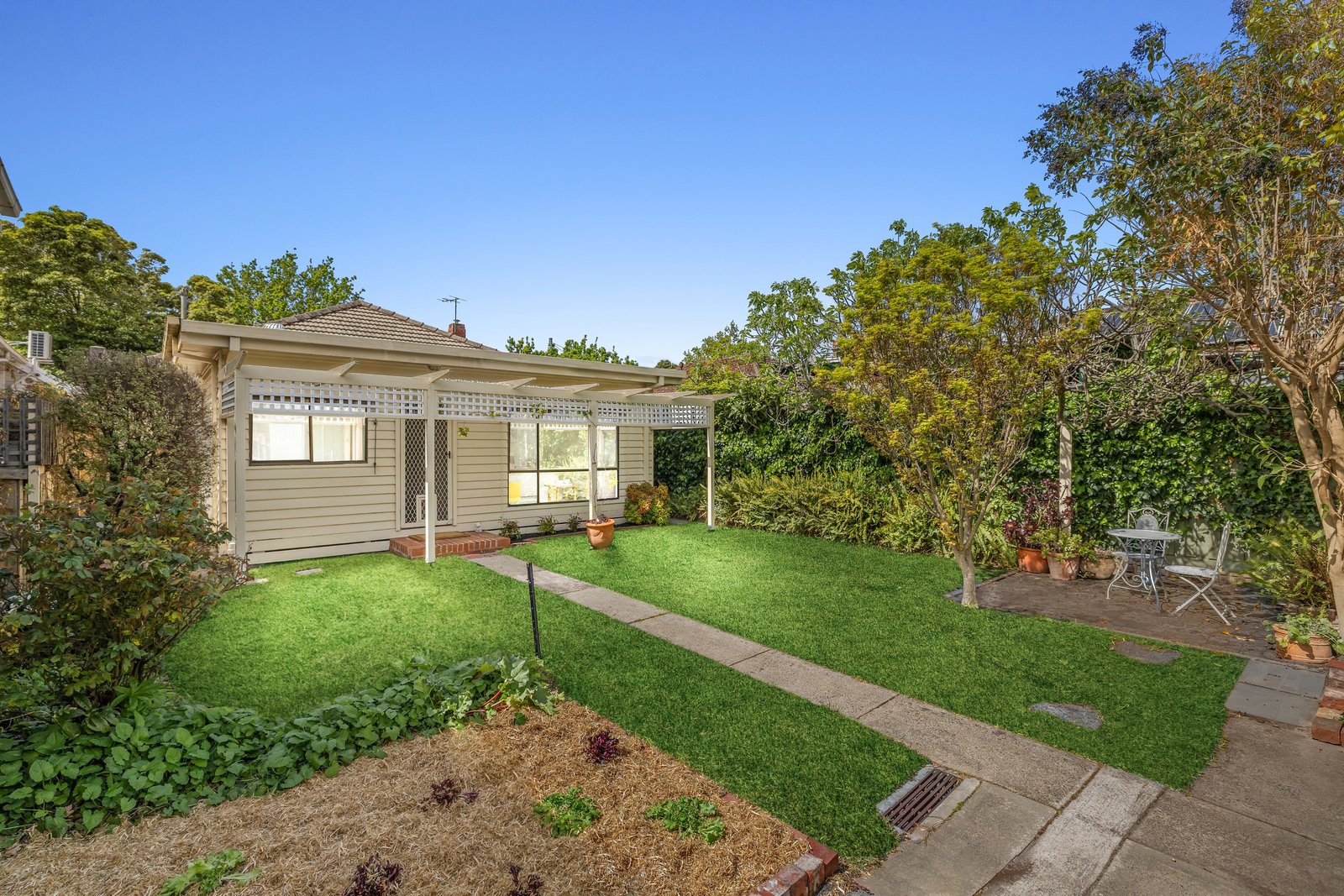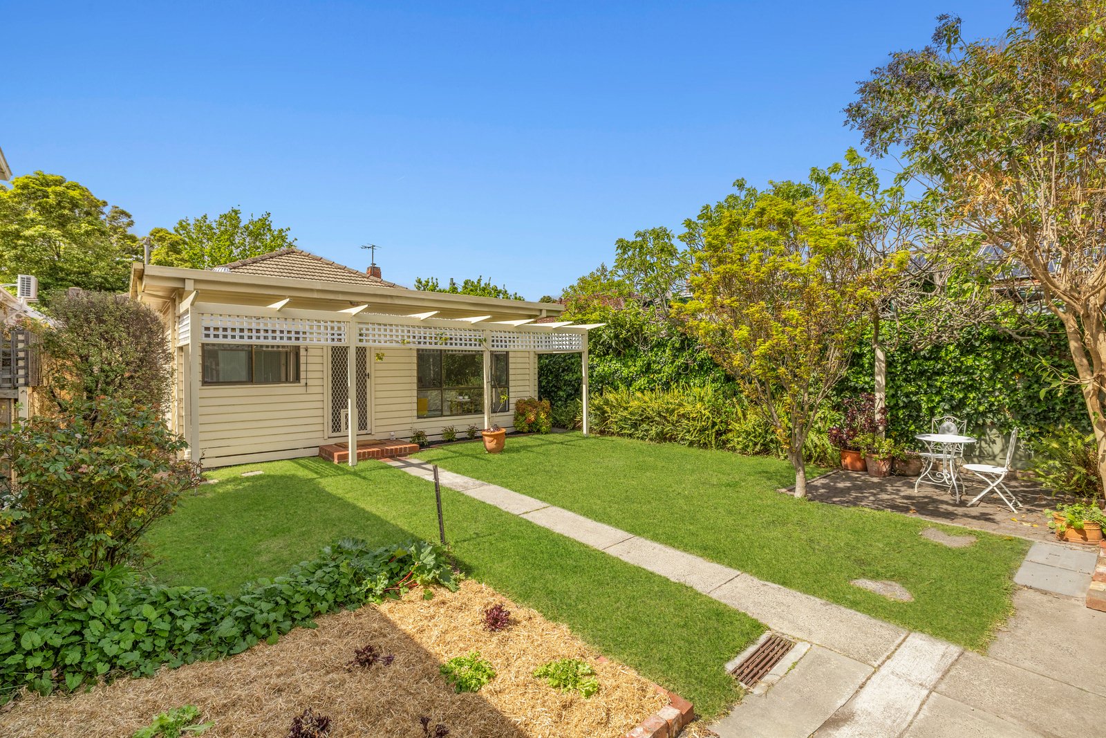 Nestled amongst an established garden, this heritage house is adorned with geometric plaster work, picture rails, high ceilings, sash windows and original joinery. At the heart of the home, the cosy lounge room flows seamlessly into the dining room and thelight filled kitchen. The floorplan includes three generous bedrooms, a neat central bathroom with tub, a separate toilet, and a spacious laundry with ample storage. Step outside to a private sun-drenched back yard featuring a paved patio for alfresco dining and a productive veggie patch.