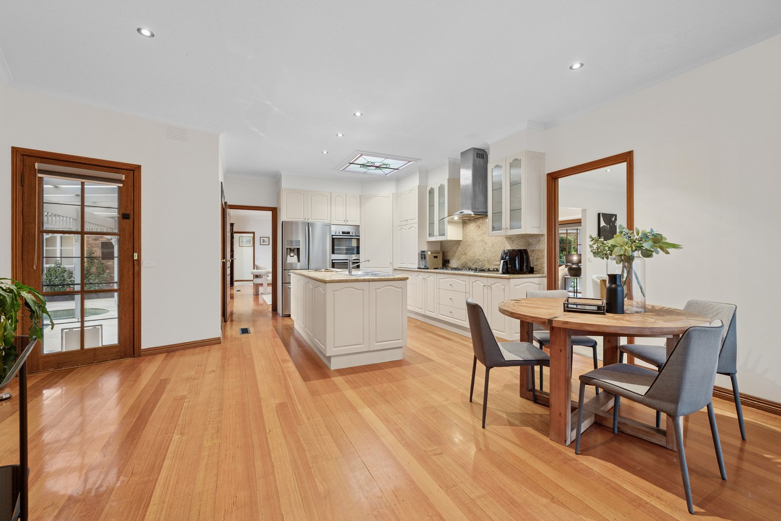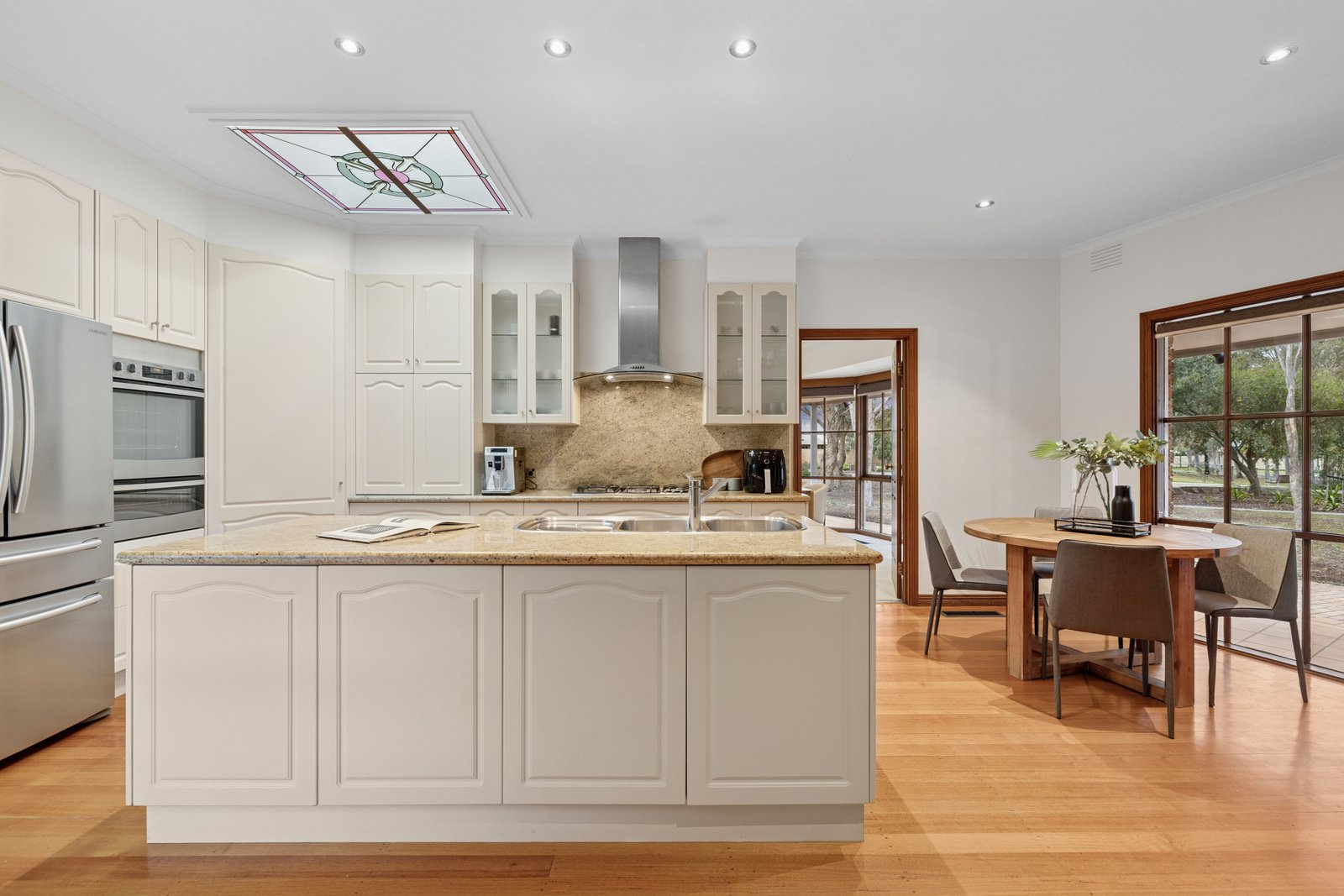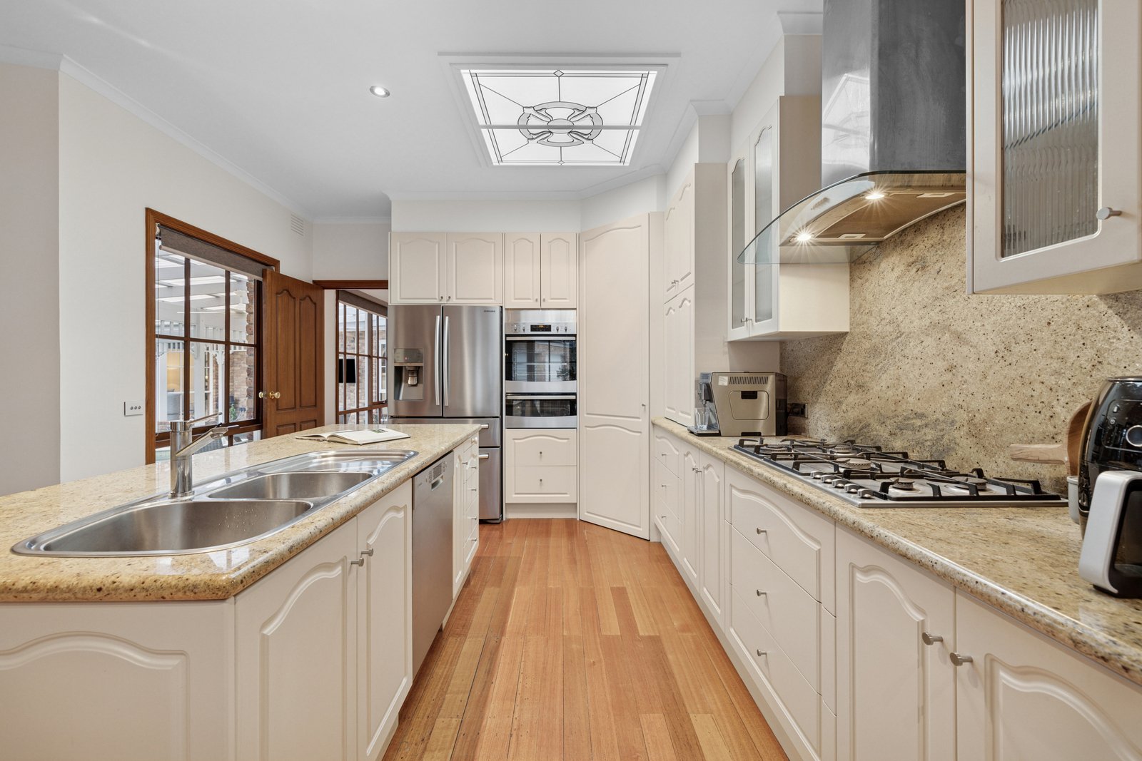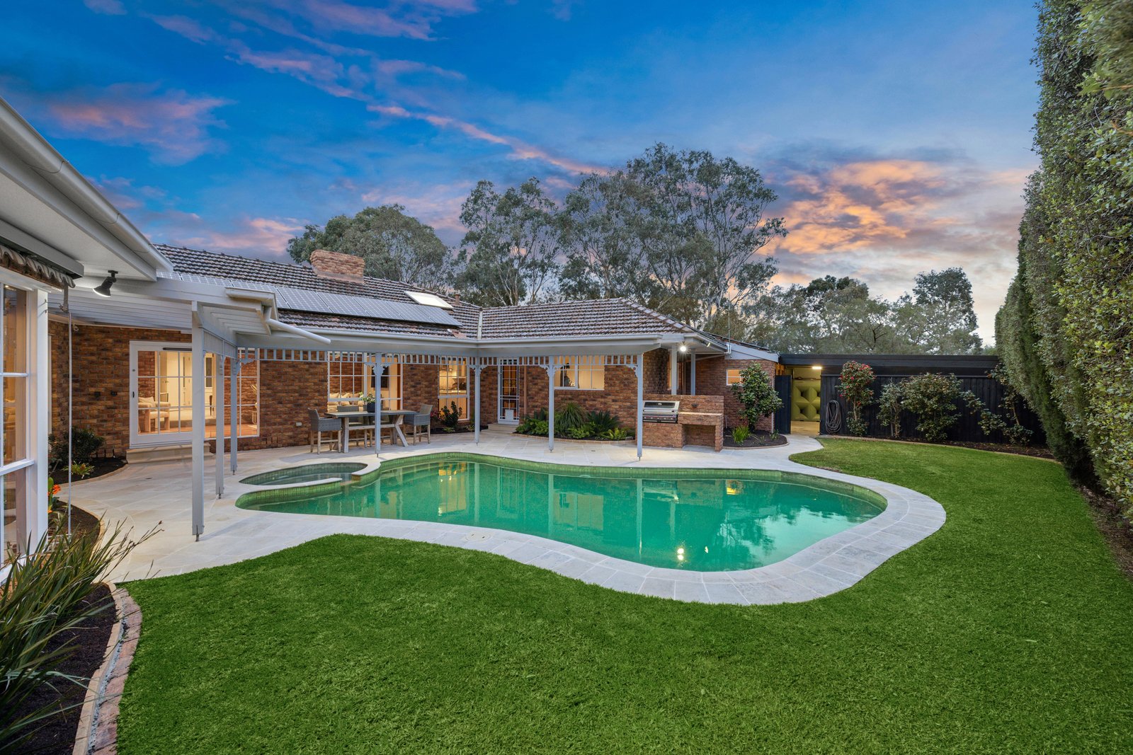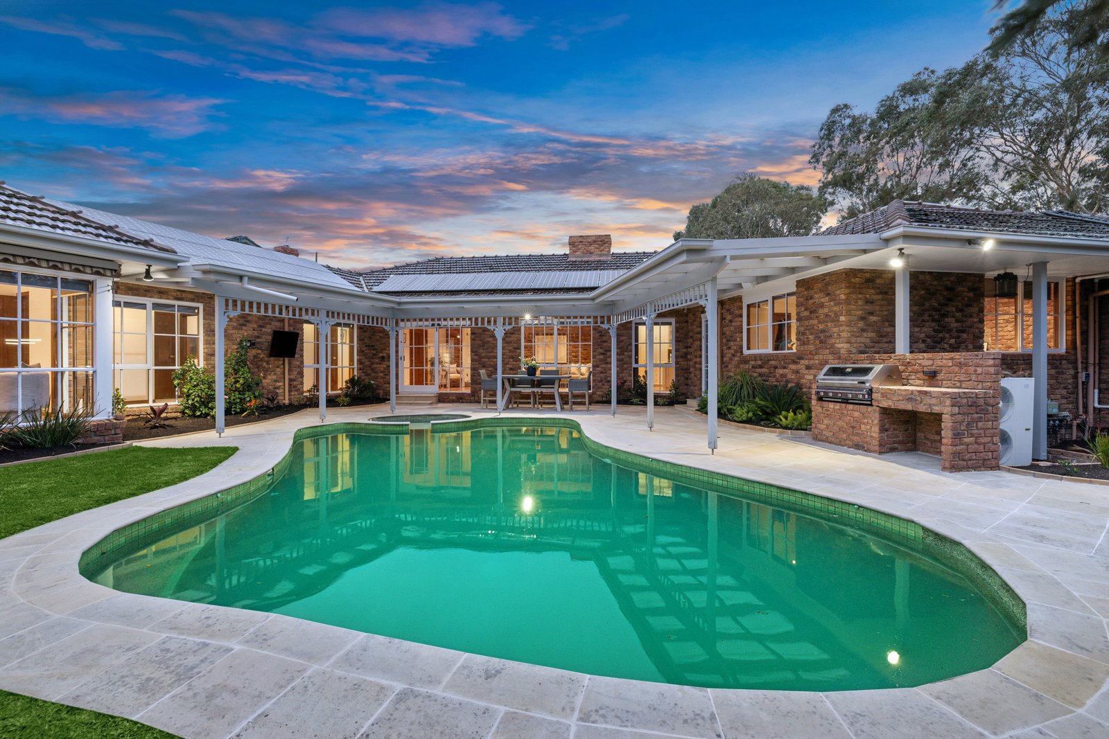 Styled for an entertaining lifestyle with a glossy granite kitchen (with Bosch dishwasher) beneath a decorative skylight, the home is finished with a mix of natural and composite stones, rich hardwood floors, warm exposed brick and timeless timber cabinetry. Prestige appointed with 3-zone climate-control, stylish ceiling fans and an impressive open-fire, the home is secured by alarm and hard-wired 8-camera CCTV, and optioned up with sound-wiring inside and out. Set in auto-irrigated grounds with immense water-storage, there’s dual-heating (gas and solar) for pool and a fully-tiled spa to add to the lifestyle...and a 5.5kW solar- system to keep the cost of living down.