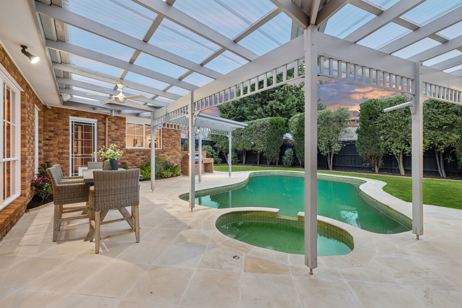 Reaching out to park with beautiful bay-windows for lounge, dining and entertaining zones, this widespread entertainer catches the sun with a window-walled family zone facing north to the pool and spa...and provides all-weather shelter in a poolside BBQ area. Cleverly zoned for perfect peace in a quiet bedroom wing, there’s privacy for parents in a pool-view master-suite ...and more than a touch of luxe with a walk-in robe and 5 Star fully-tiled, floor-heated dual-vanity ensuite.