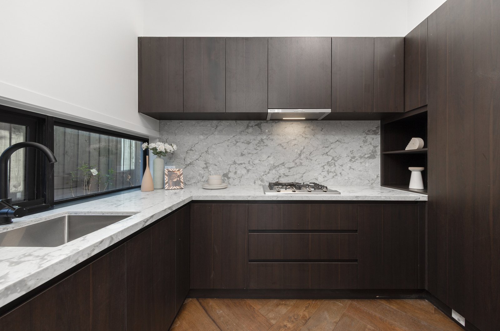 ● Premium stone-effect splashbacks for a seamless, tile-free luxury finish
