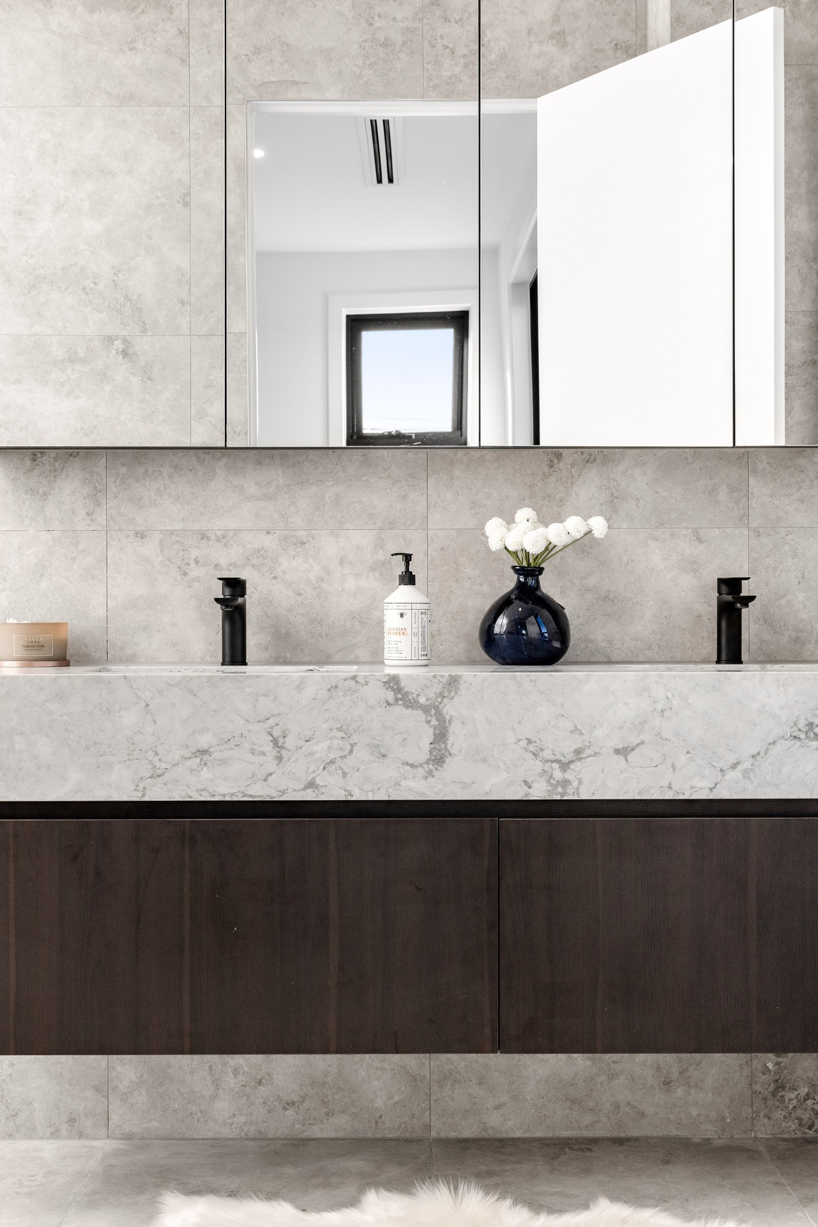 The ground floor also features a guest/4th bedroom with ensuite and built-in robe, powder room, and a fully fitted laundry with stone benchtop and abundant storage.