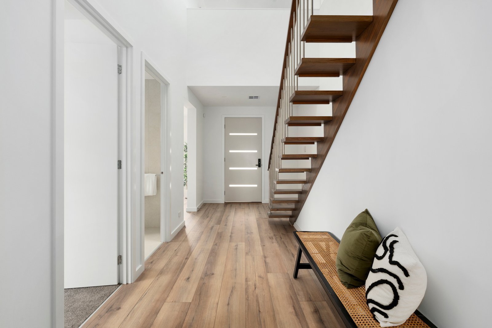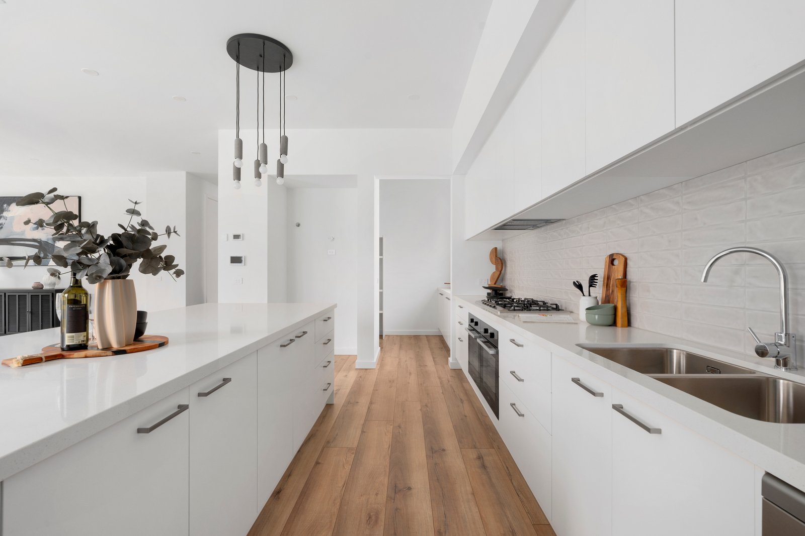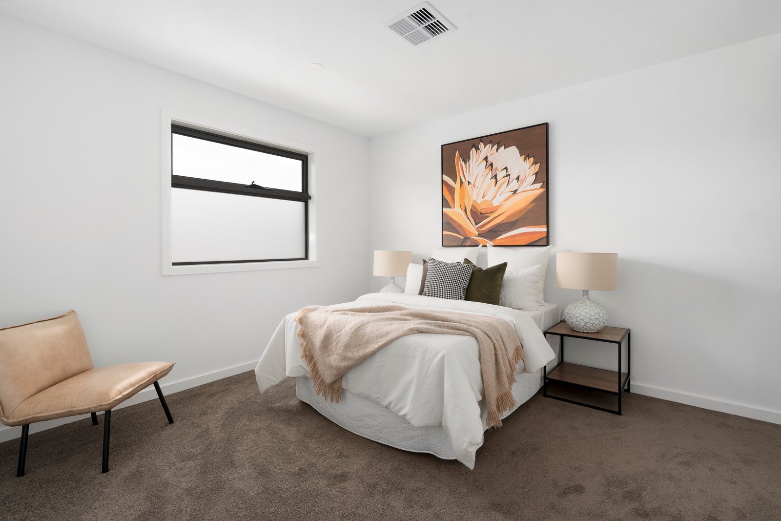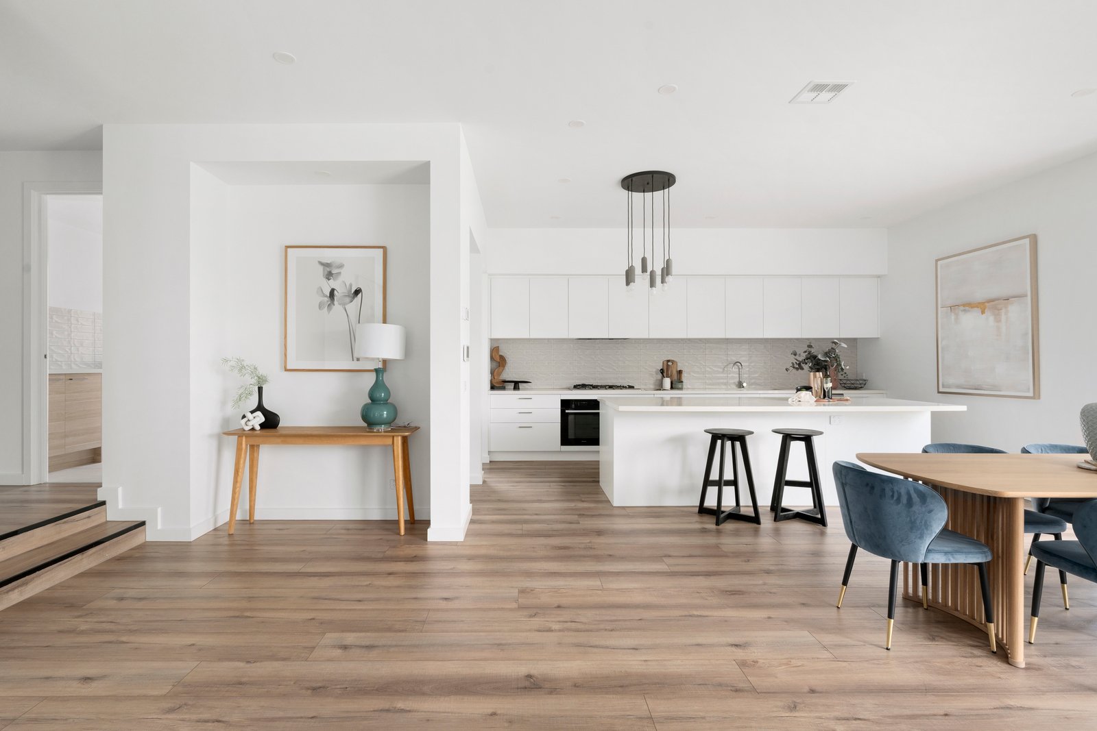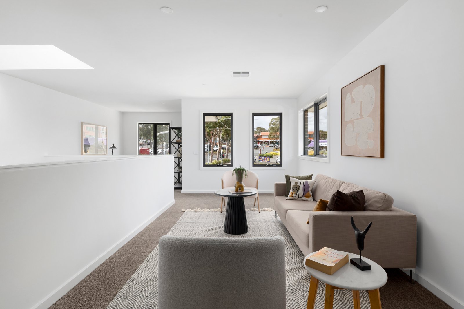 natural light, with East facing frontage providing plenty of morning sun and afternoon sun illuminating the rear garden and its lush turf landscaped lawn. Sized for the growing family, there’s even a 3rd living space at the top of the stairs, ideal as a children’s play area or remote working.