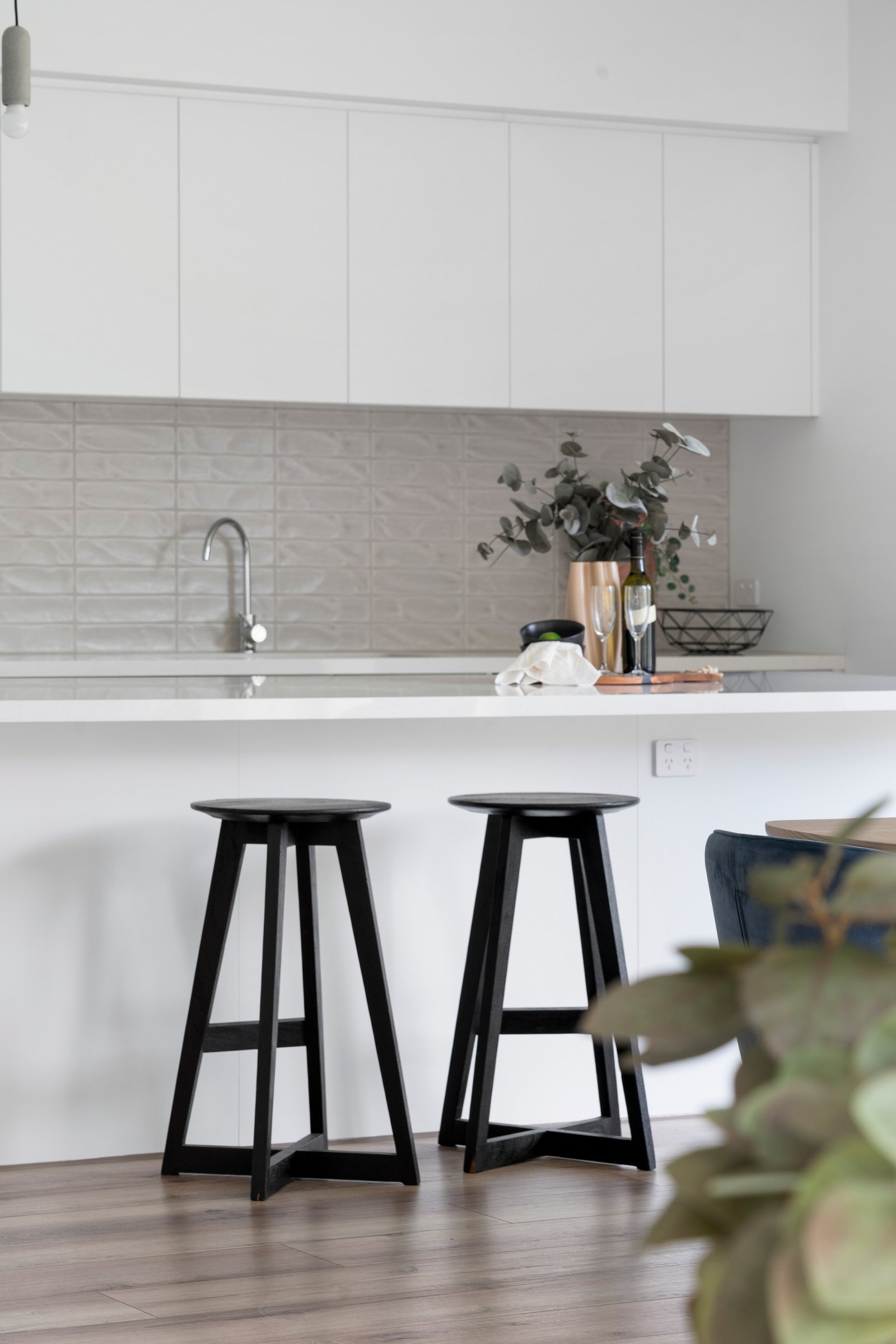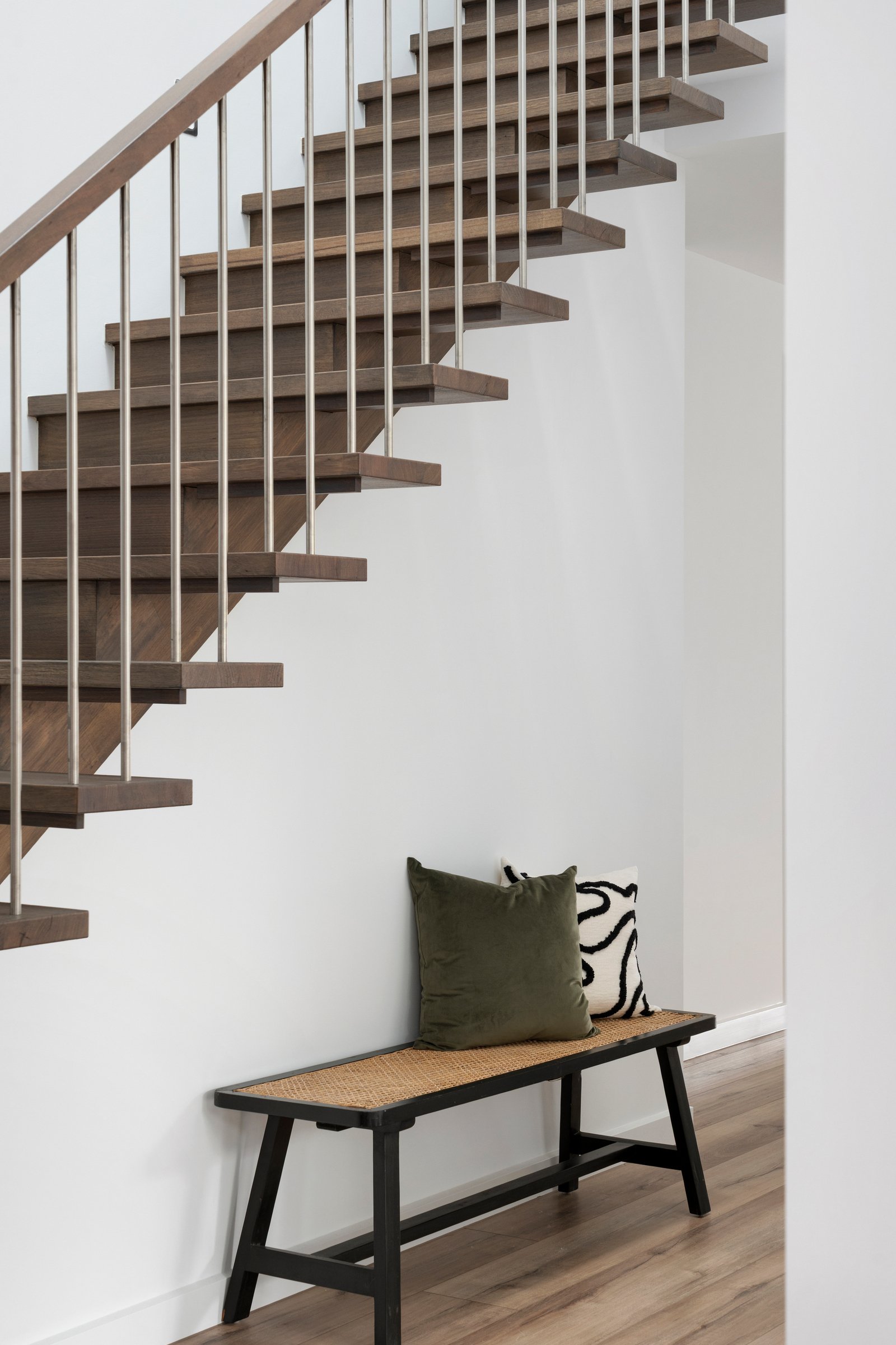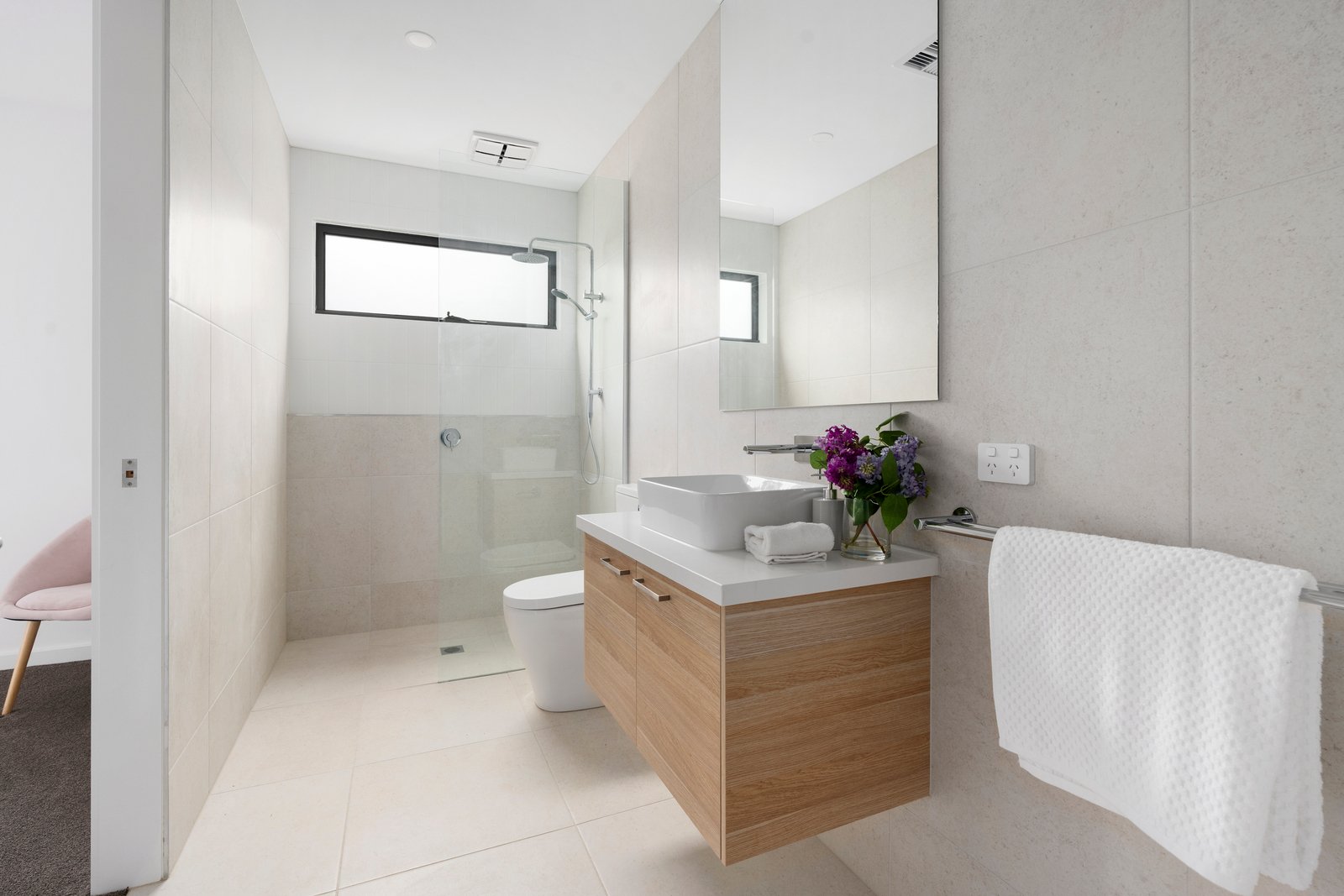 Having a bedroom and ensuite on the ground floor, allows for flexibility and the potential for parents or a guest to have their own private space close to the home’s entrance. The choice of soft neutral finishes in white and beige create a soothing palette throughout, tapping into the trend for a calm interior.