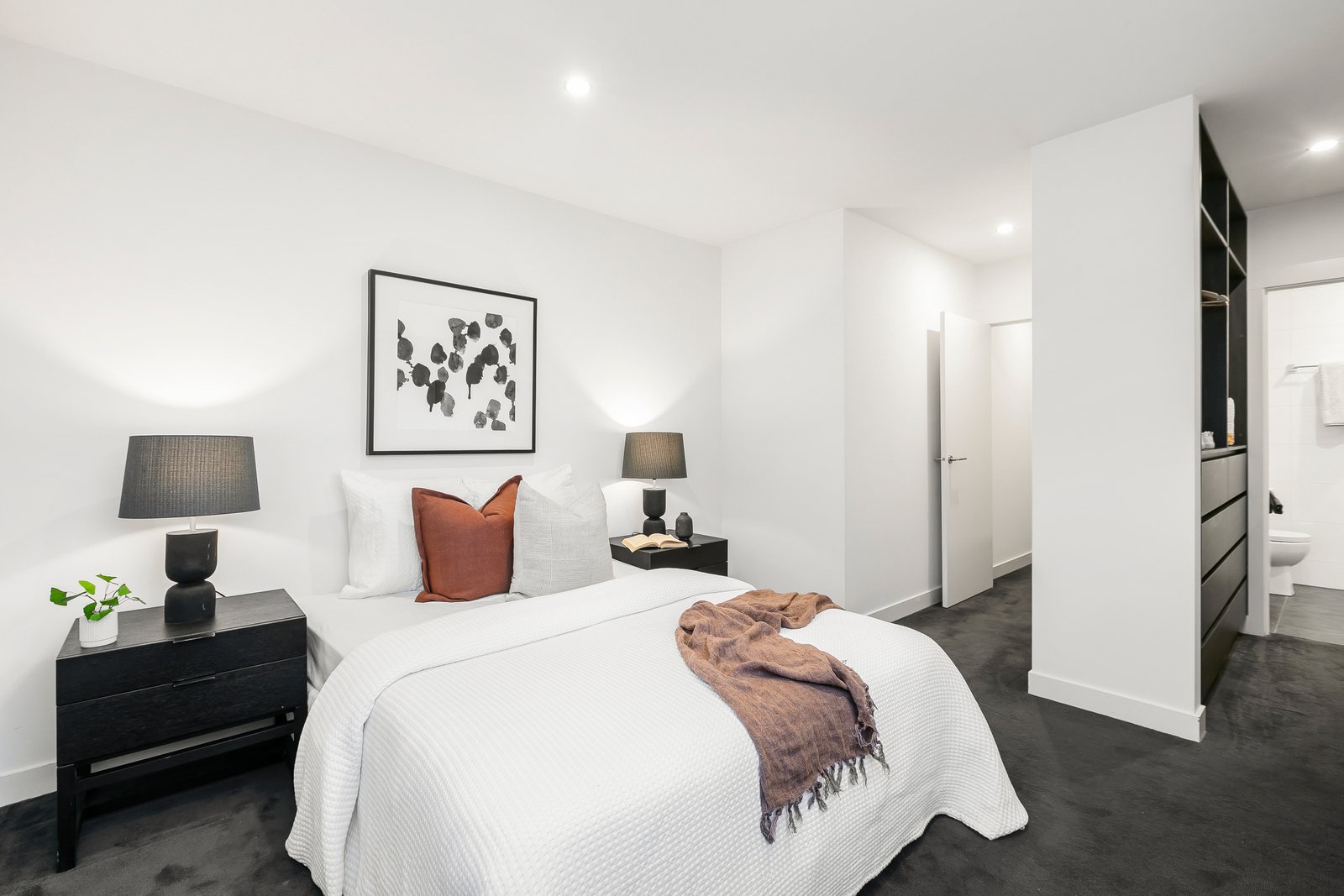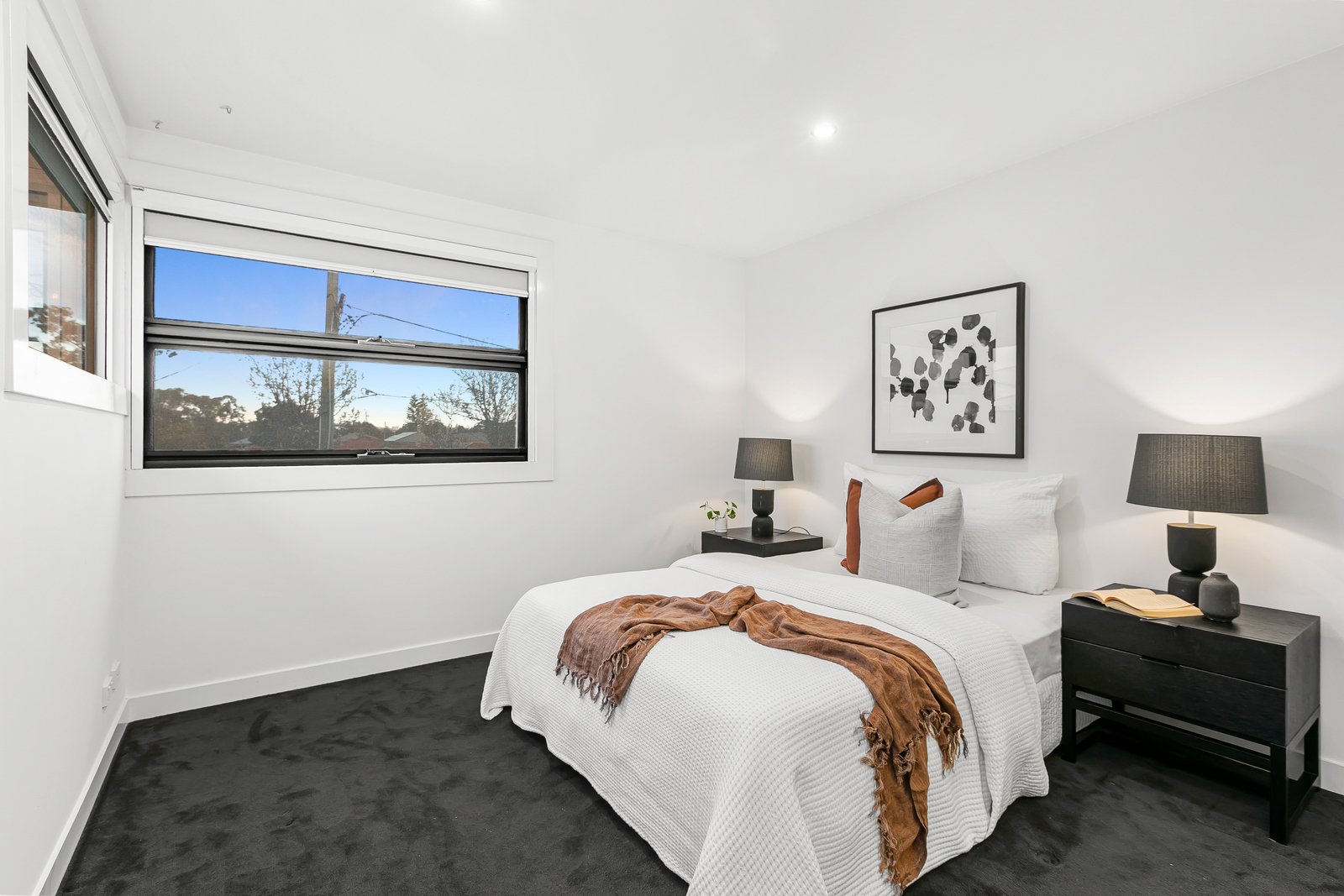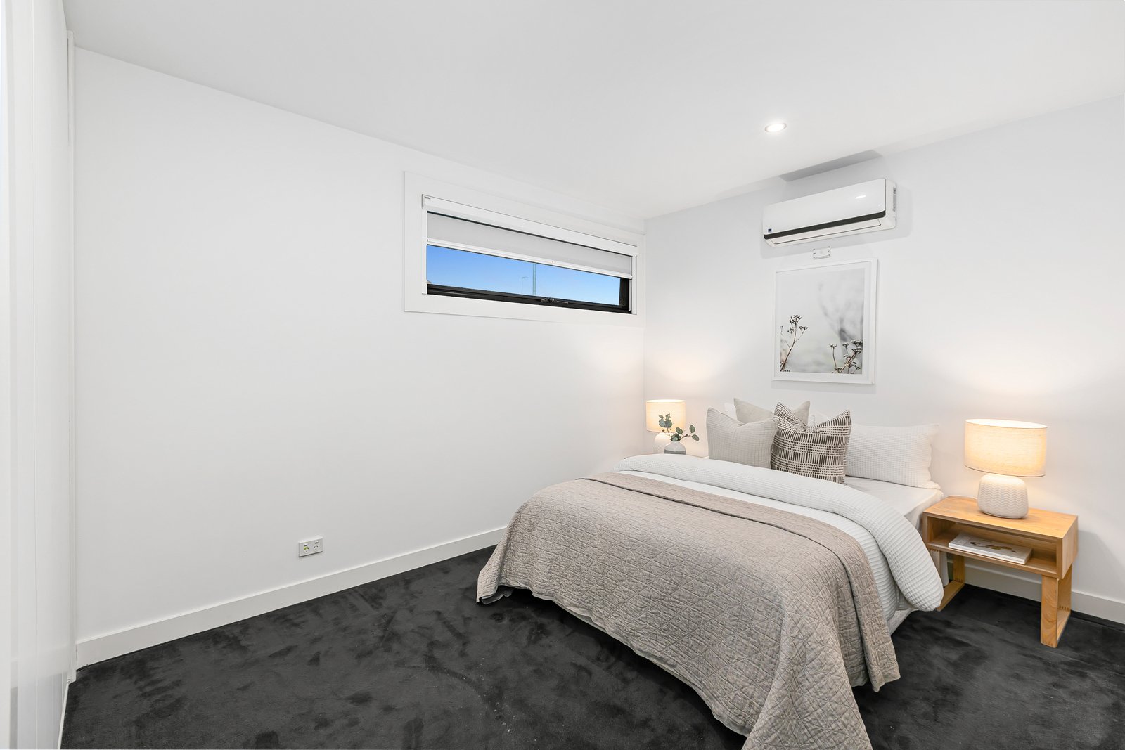Retreat upstairs to find the luxurious master bedroom complete with built-in robe and private ensuite, complemented by two additional well-proportioned bedrooms, each featuring built-in storage. All upper-level rooms enjoy the comfort of individual split-system units and are enhanced by dark grey carpeting for a cosy feel. A generous family bathroom with bathtub serves the secondary bedrooms perfectly.