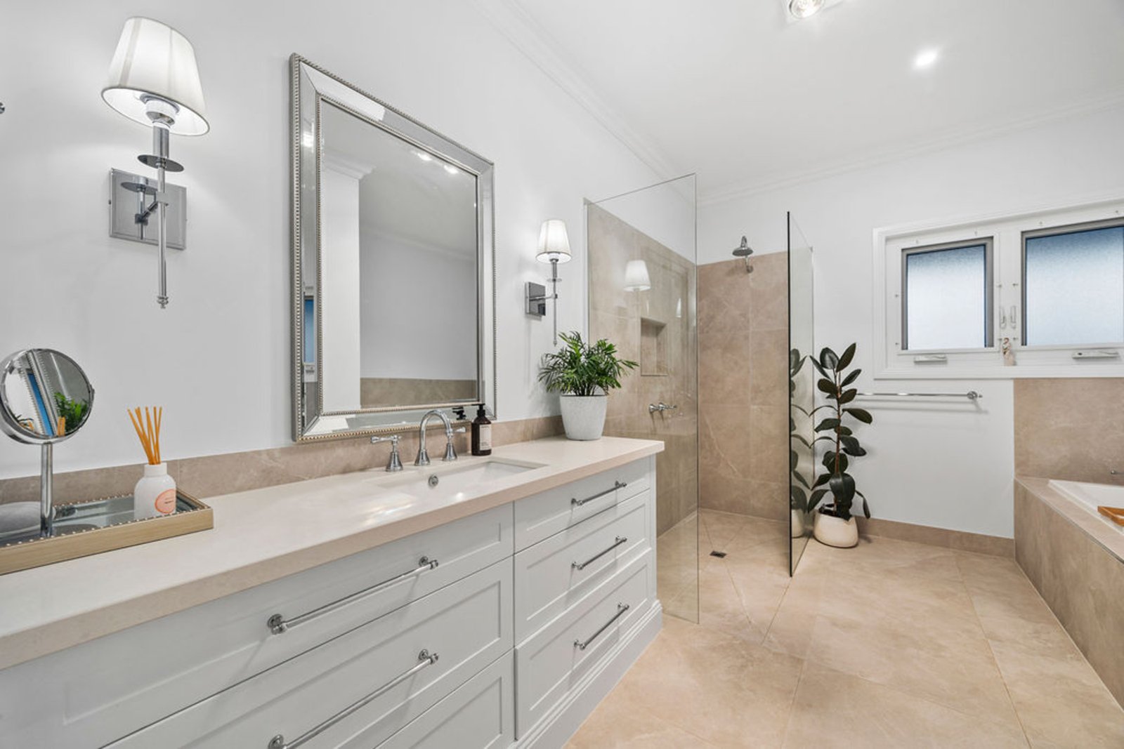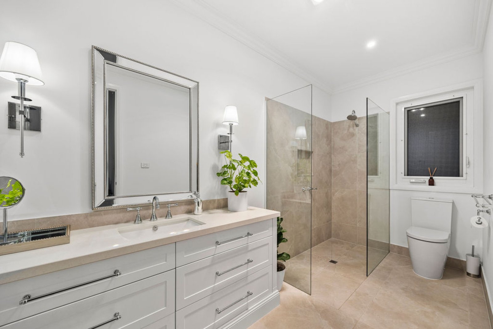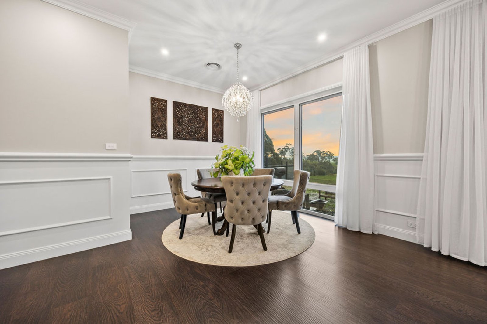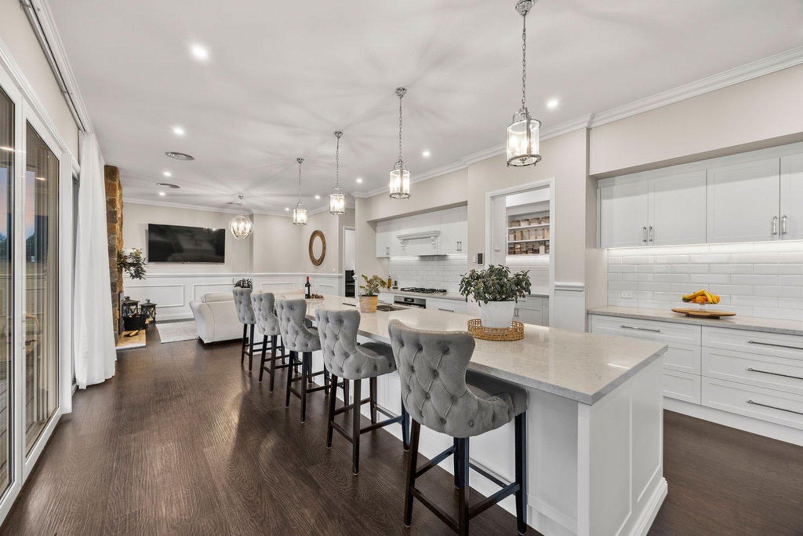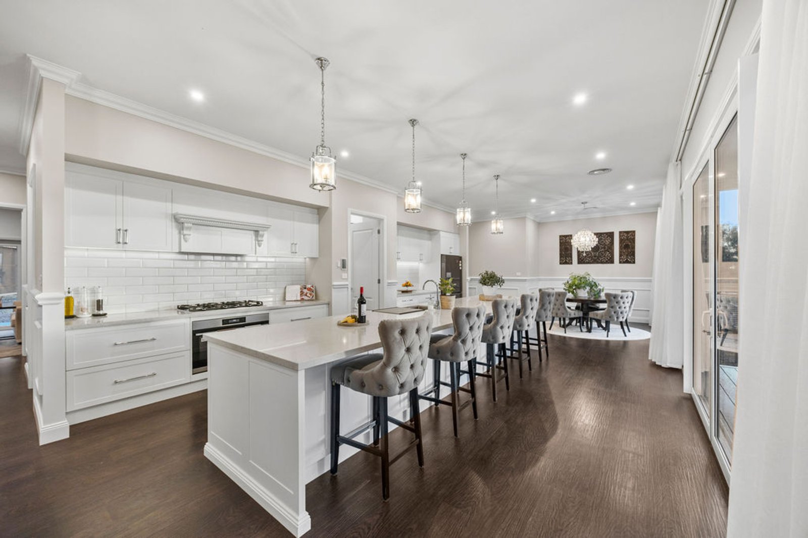 From the moment you arrive, the sense of space and serenity is unmistakable. Step inside through the grand front door and be greeted by soaring three metre ceilings, bespoke panelling, and light filled interiors that flow seamlessly to the outdoors. This is a home designed for comfort, connection, and retreat.