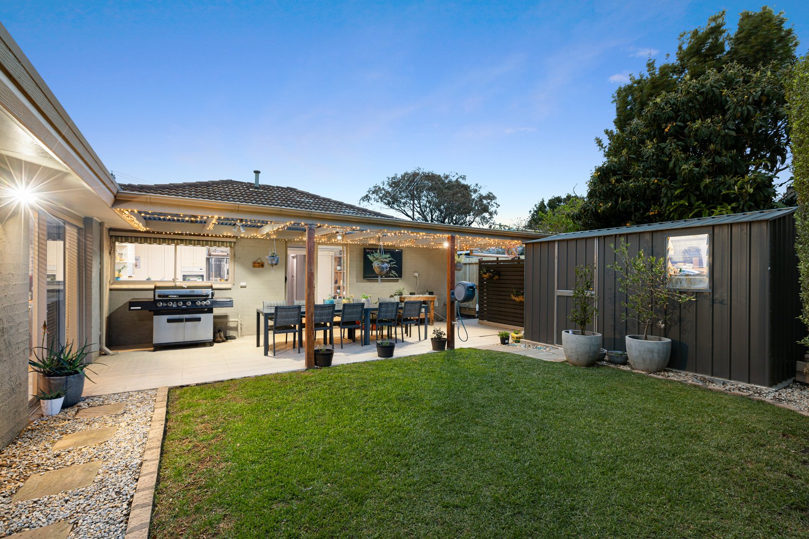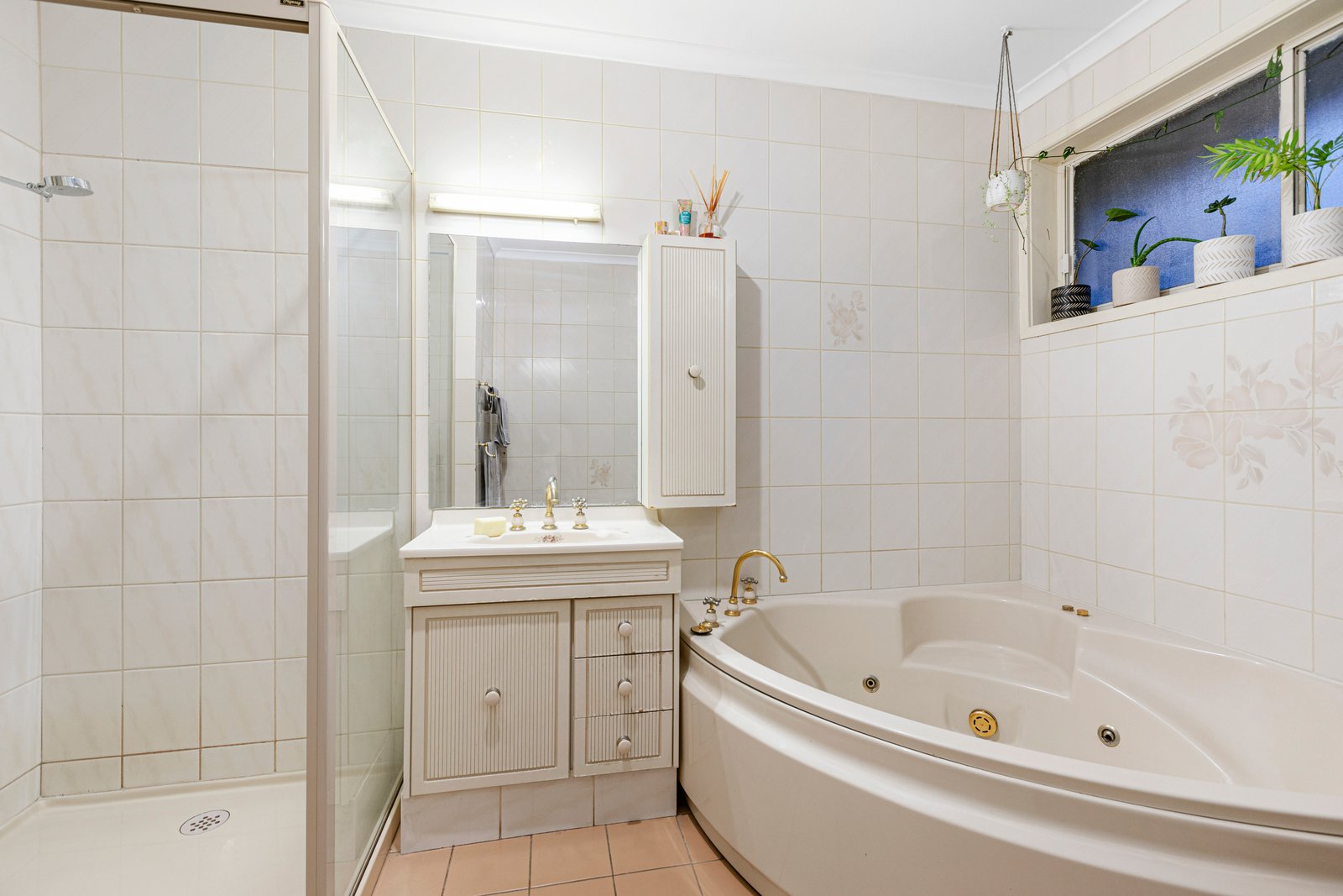To the rear, a large sheltered alfresco looks out over the leafy surrounds, while a second entertainers’ patio sits beside the solar and gas-heated luxury pool and generous spa, privately set behind a tall wall—perfect for year-round enjoyment.