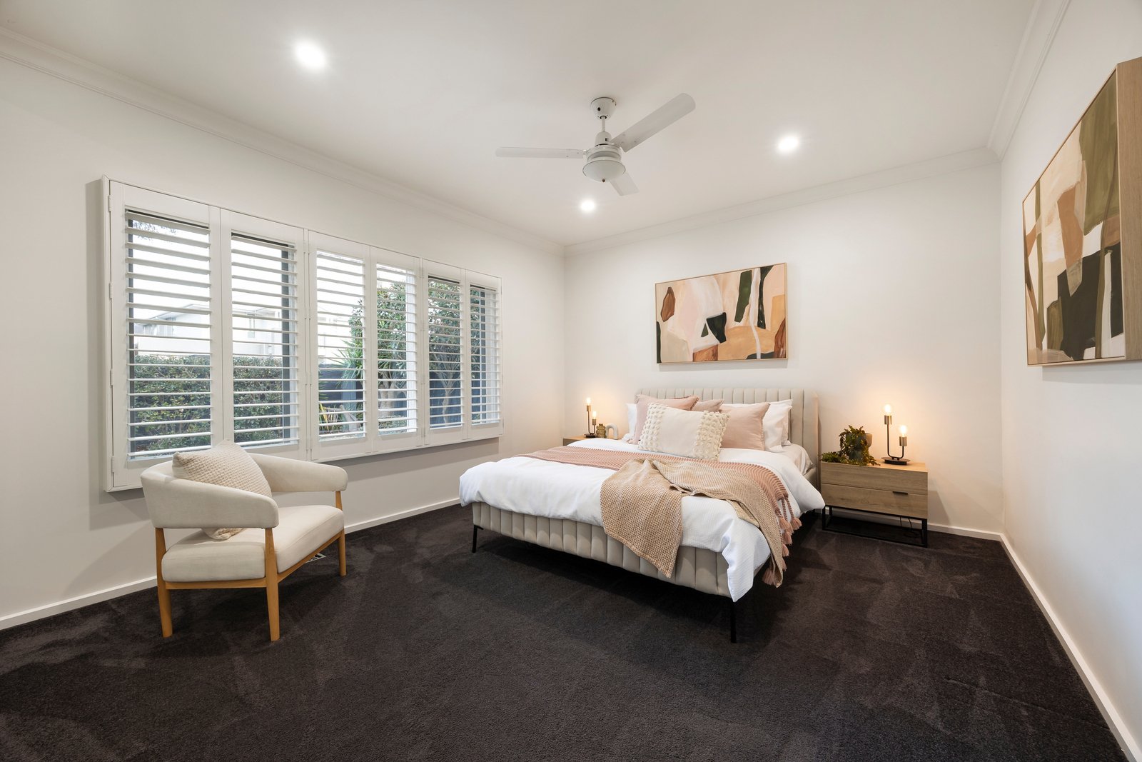 Styled with secret cavity-sliders to separate the interior living zones, tall French doors to open wide to the outdoors and huge full-sun decking in addition to the all-weather entertaining area, there’s even a designer cubby to add to the fun in the big backyard. Well-secured behind this an auto-gated parking, this well-appointed home has plentiful parking too, with room for at least three cars including a carport plus a securable shed.