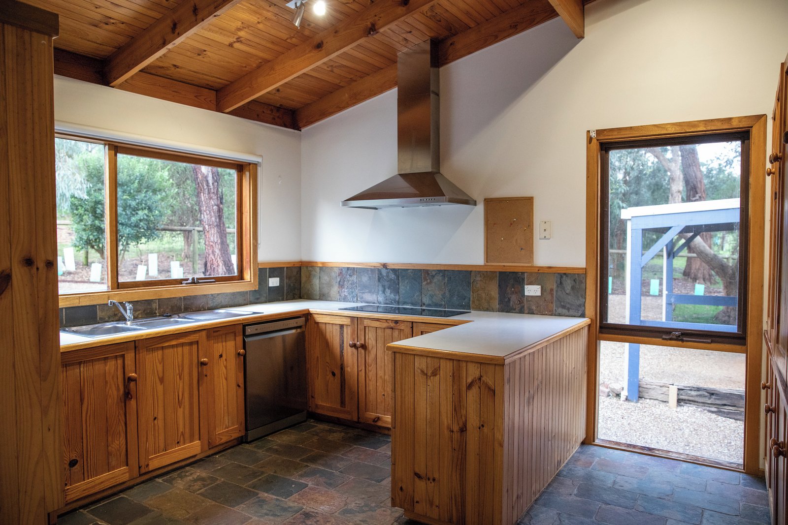 - A charming kitchen and adjacent dining room opens to a large front deck in pleasant treed surrounds