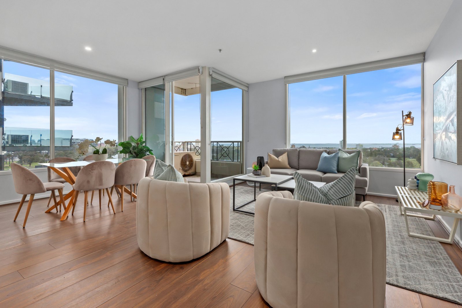 Set high above the bustle below, and enjoying a prominent city-fringe location, this spectacular 3-bedroom apartment is generously proportioned with an abundance of natural light. Framed by breathtaking views of Port Phillip Bay, Albert Park Lake, and St Kilda, the outlook is nothing short of mesmerising, delivering a first-class position to watch...