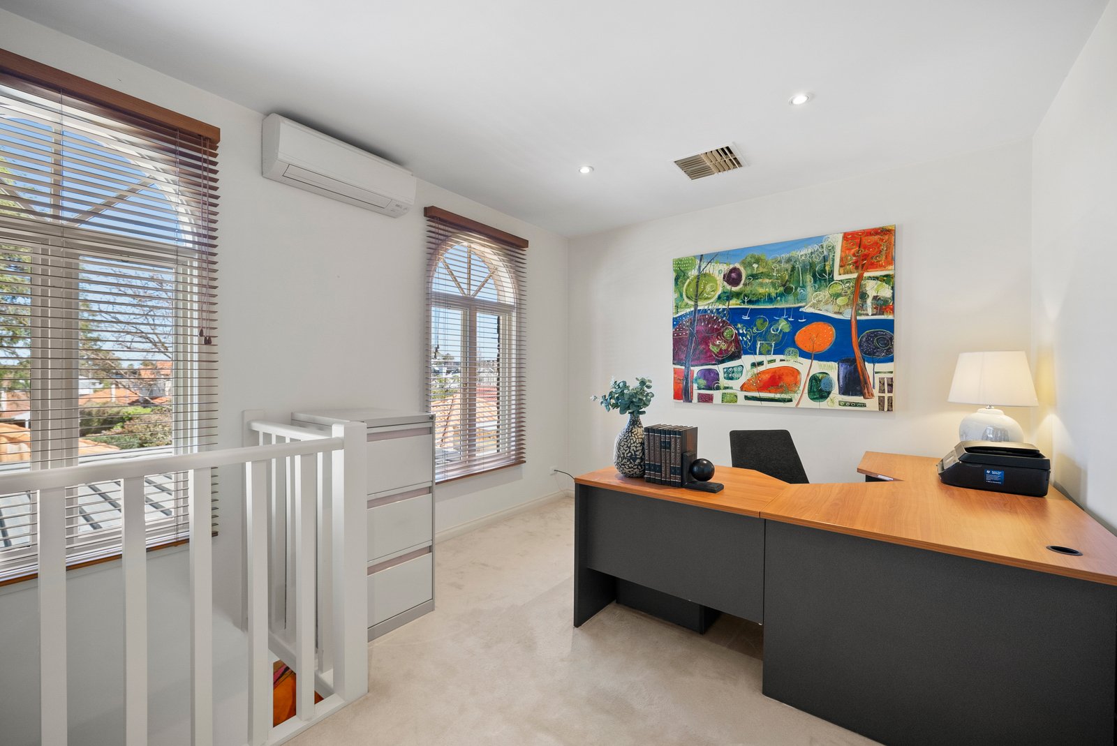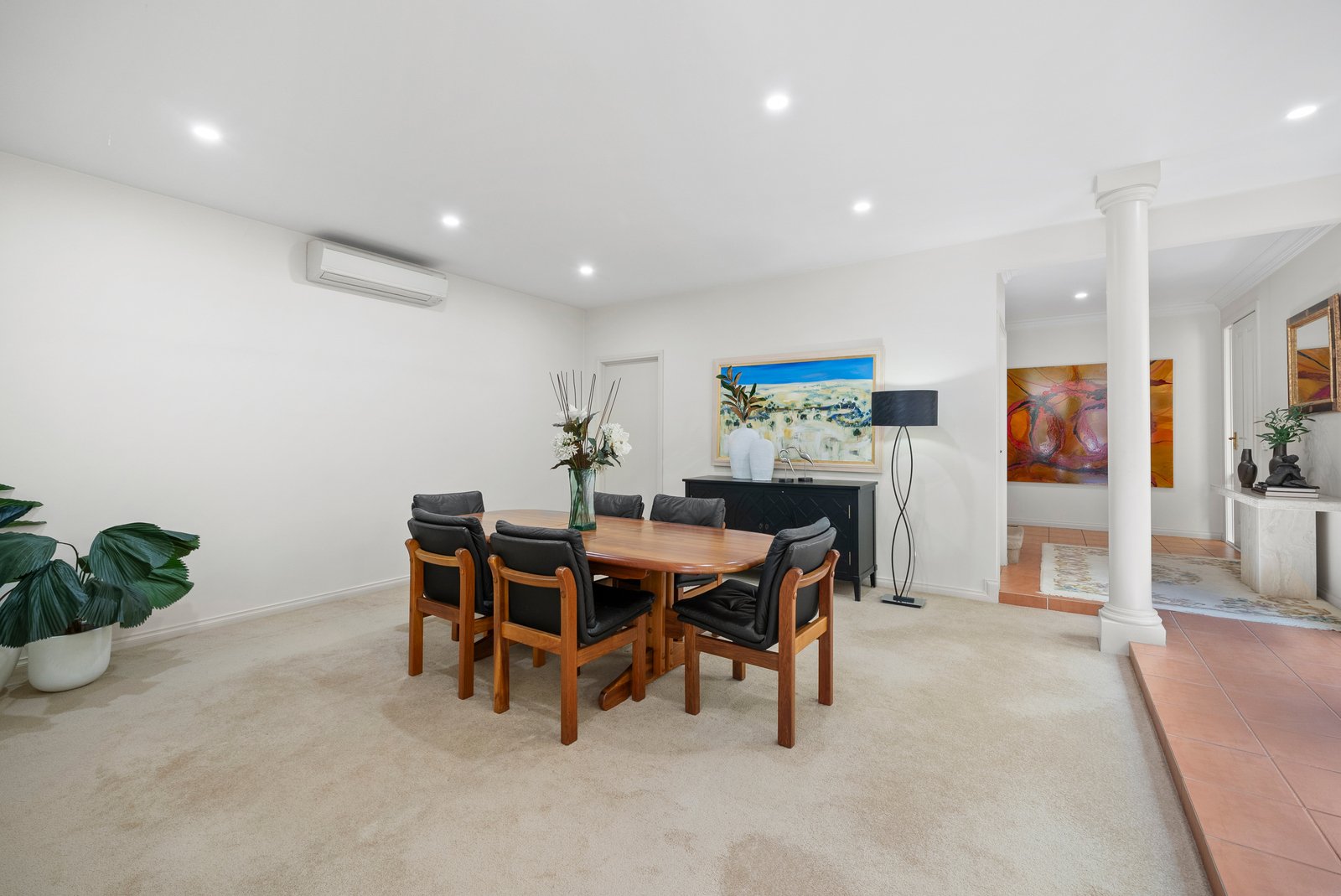 Accommodation balances privacy with flexibility. The ground-floor master suite offers garden outlooks, a walk-in robe and a spa ensuite for relaxation. Upstairs, two robed bedrooms share a family bathroom, while a retreat or study nook provides scope for a potential fourth bedroom.