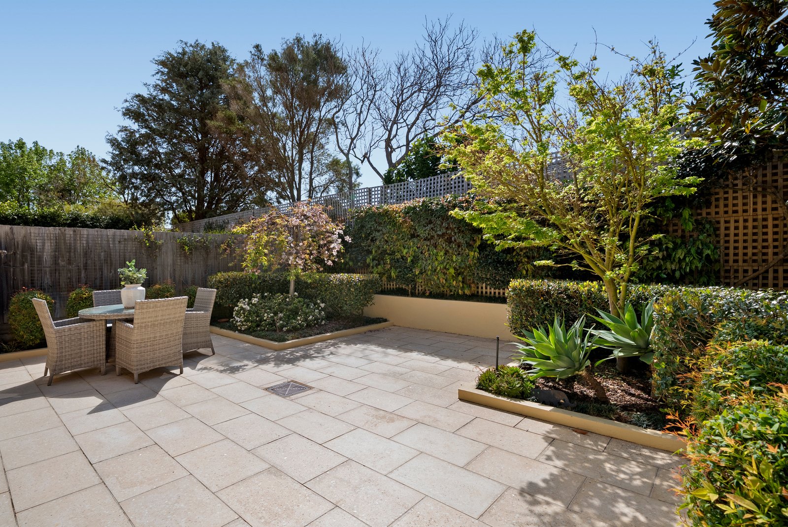 Enclosed by high walls and manicured gardens, this beautifully proportioned three-bedroom, two-bathroom residence offers privacy and seclusion just footsteps from the shore.