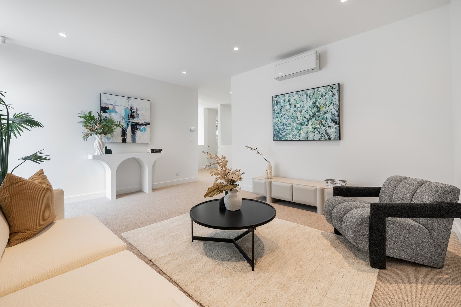 The home features high-specification double glazing, and individual Daiken climate-control zoned to every room. Secured to the highest standard with spectacular tri-lock double entry-doors (with keyless entry, and climate and noise controlling honeycomb construction), the home is further secured by an alarm, video intercom, CCTV and a double auto garage with storage.