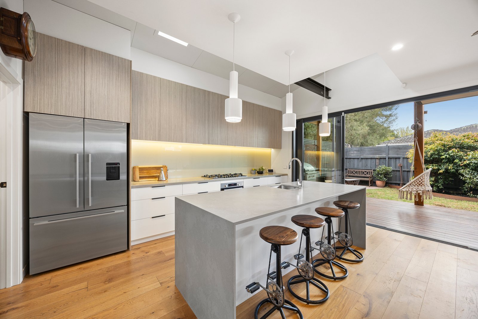 Walls of glass capture views of lush, low maintenance gardens, while stacking sliders dissolve the boundary to a broad entertainment deck. Shaded and serene, this al fresco setting invites long lunches, twilight dinners and weekends spent in easy company - all set within low maintenance north-facing surrounds.