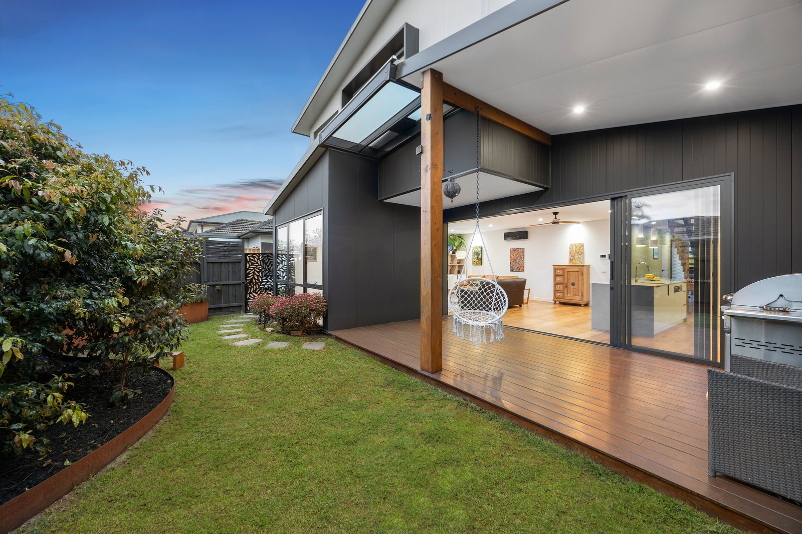 A bold contemporary facade makes a striking first impression in this architect designed three bedroom, two bathroom plus study residence.