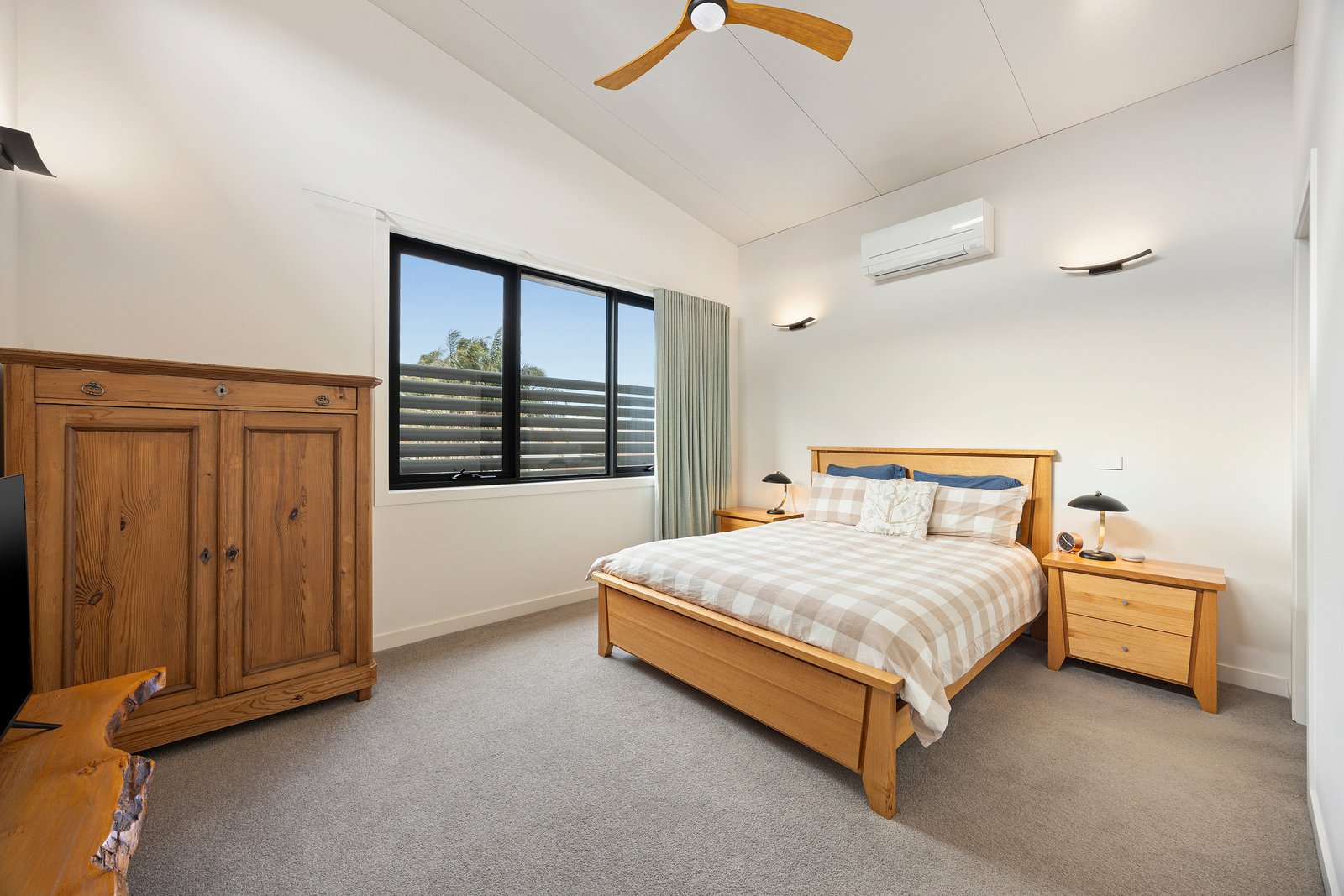 Expansive glazing, insulated wall panelling and carefully positioned windows shape a home of natural light, flowing air and enduring comfort. Split systems, ceiling fans, video intercom and security alarm assure year-round ease, while a fitted laundry, powder room, abundant storage, 4.275kW AC Enphase solar system and internal double garage complete the practical design.