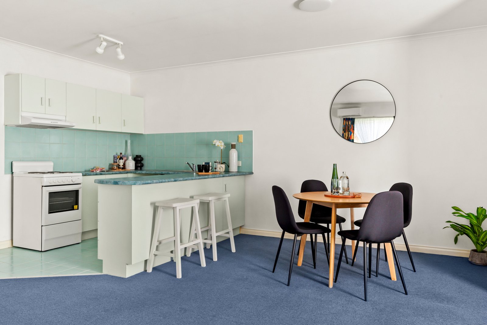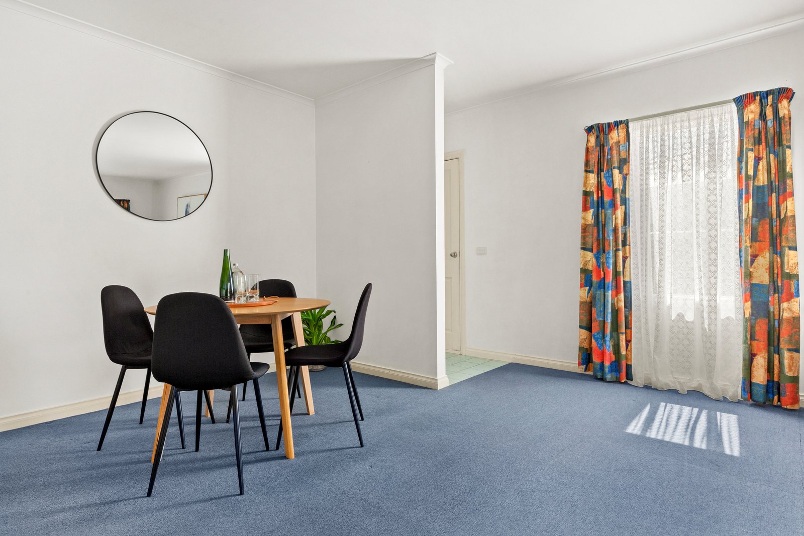 Accommodation is smartly zoned for privacy, featuring two well-sized bedrooms with built-in robes and glass sliders opening directly outdoors. A neat bathroom with bathtub, a separate WC and full laundry enhance everyday functionality. This comfortable unit offers exciting potential to refresh, update or personalise throughout.
