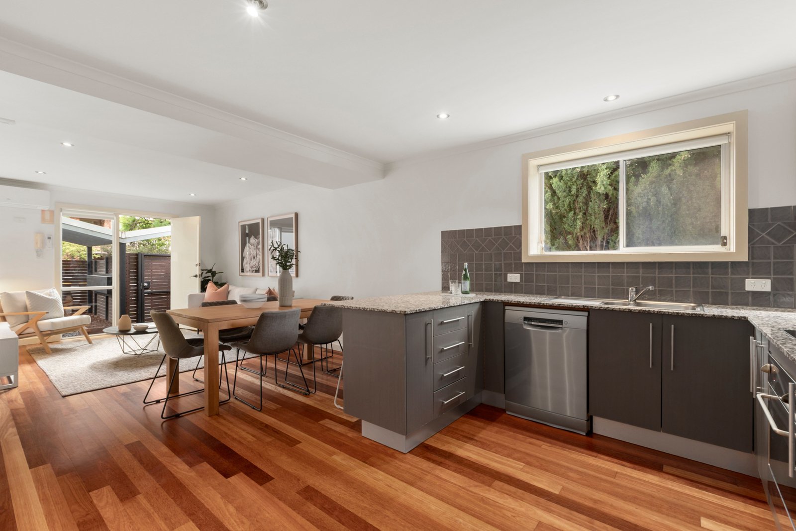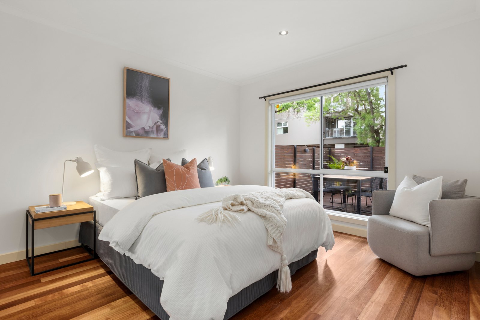 Inside, an open layout provides flow between the living, dining and kitchen zones, designed for ease of living. Framed by natural light, the inviting space seamlessly connects to the outdoors, opening onto a private courtyard with a decked entertaining area. The link between indoors and out elevates everyday living, offering a serene space to enjoy a morning coffee, or host a summer barbeque with friends and family. With its secure design, the apartment is also pet-friendly, making it an ideal choice for those wanting a home that caters to every member of the household.