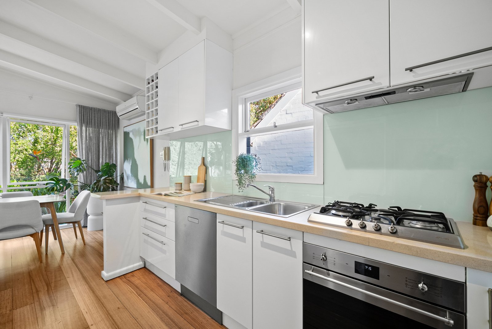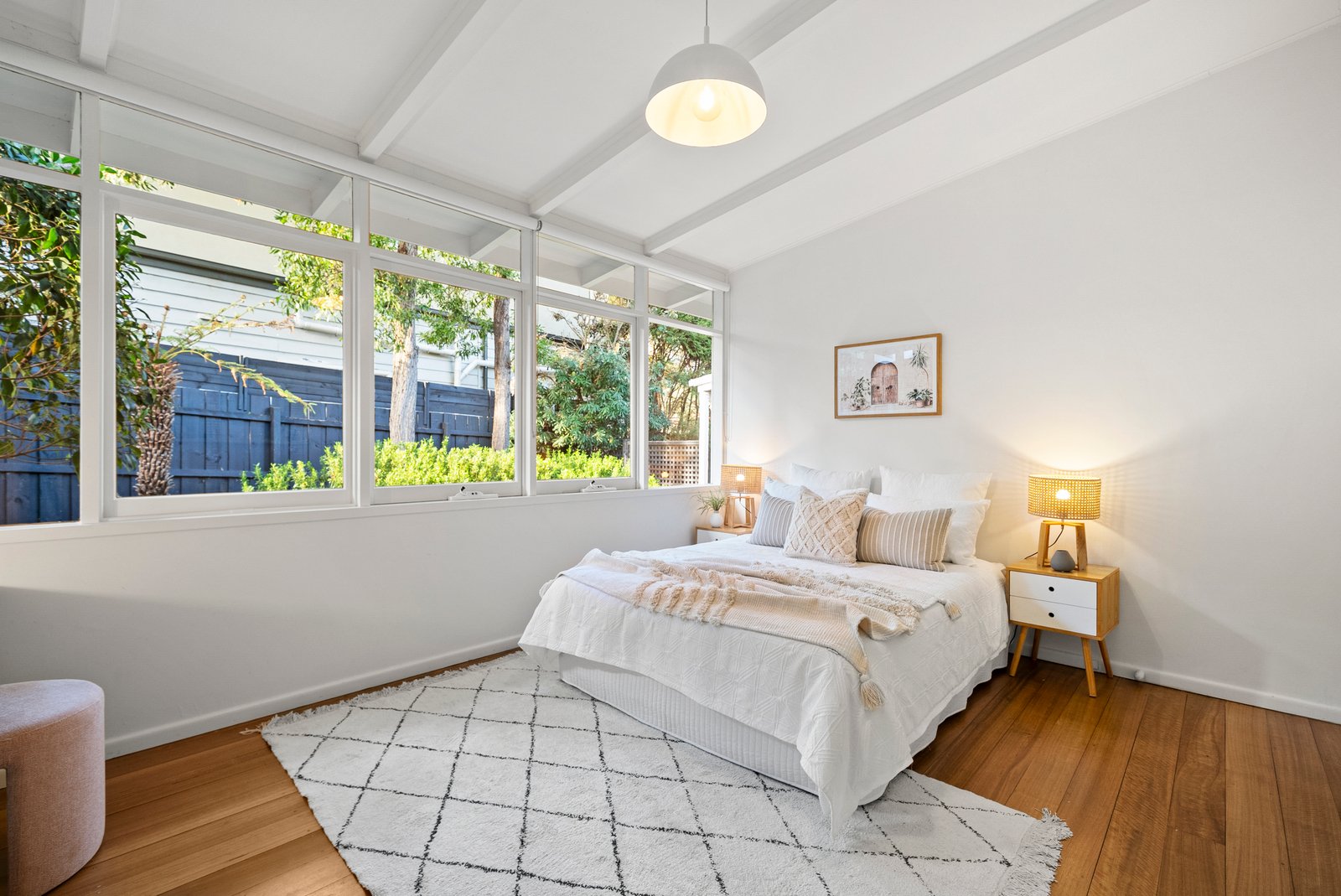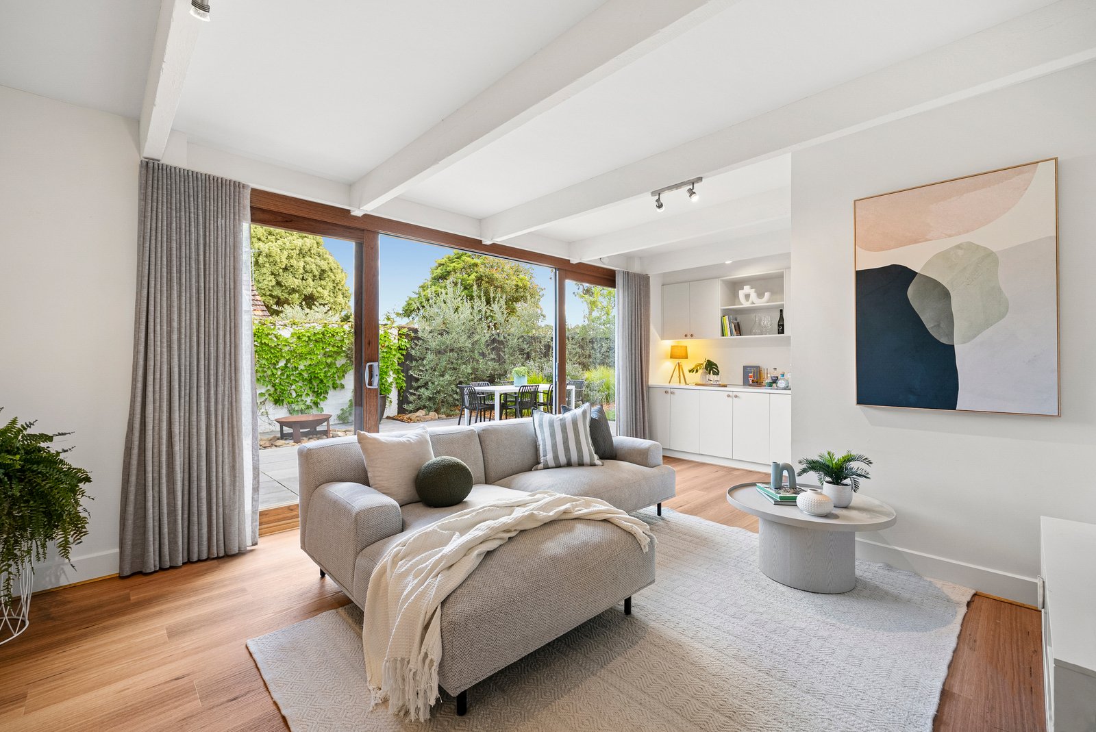 Past a delightful picket fence and gardens alive with every shade of green and texture, a timeless mid-century facade introduces a four bedroom, two bathroom residence with west facing rear. The home which is just moments from the bay is defined by its constant connection with the landscape. Every window, every living space, every moment feels anchored to the beautiful outdoors.