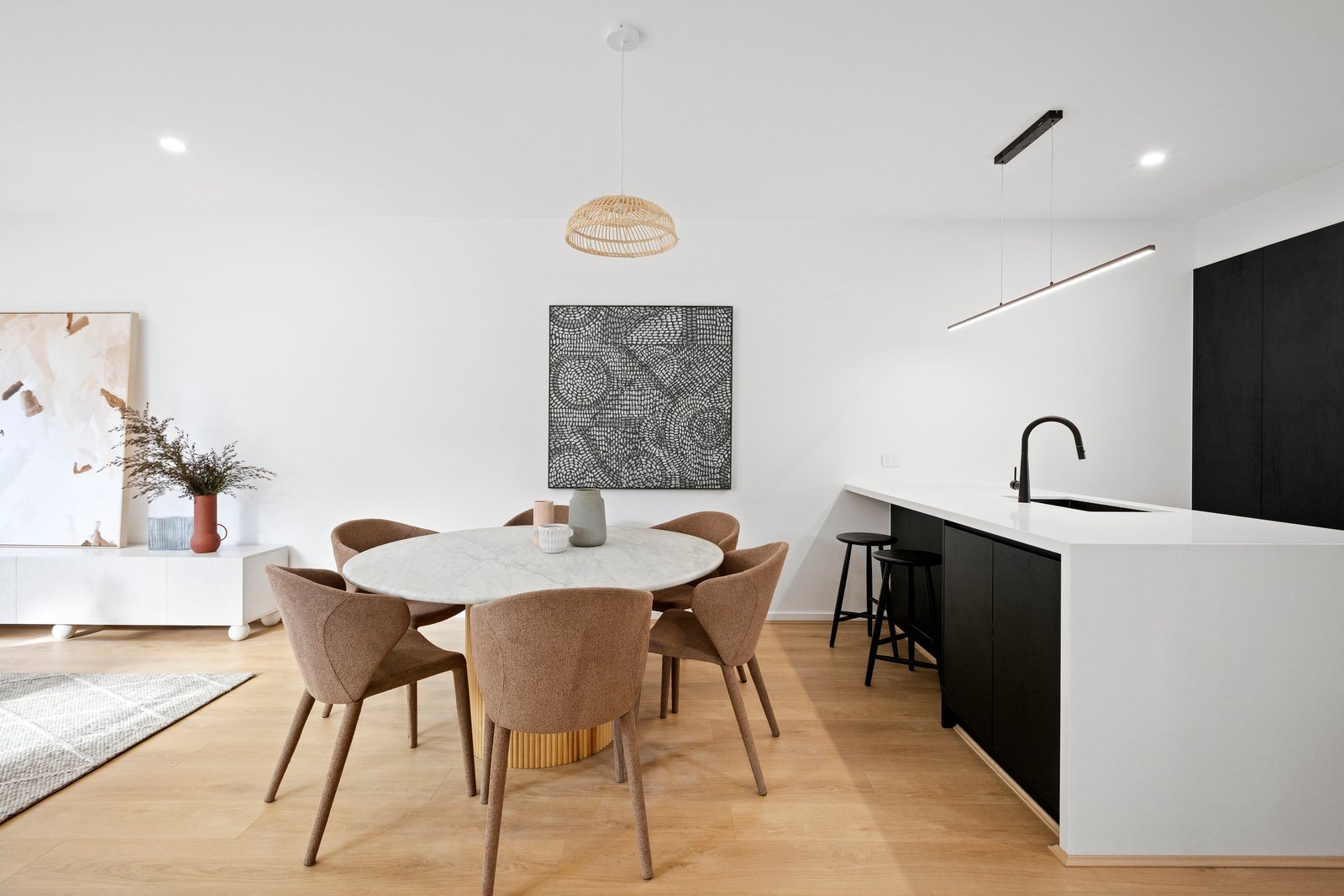Finished to an exacting standard, the home’s eye-catching and modern façade with linear bricks, metal cladding and linear weatherboards opens to inviting accommodation that is oriented to capture optimum northerly sunshine and warmth - its incredible attention to detail is on display at every turn.