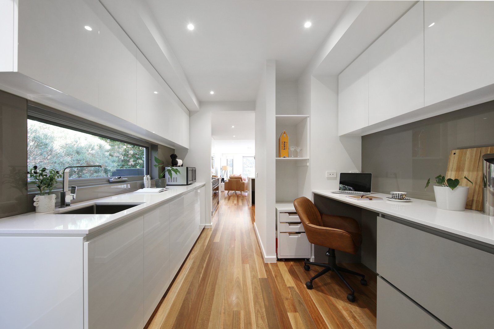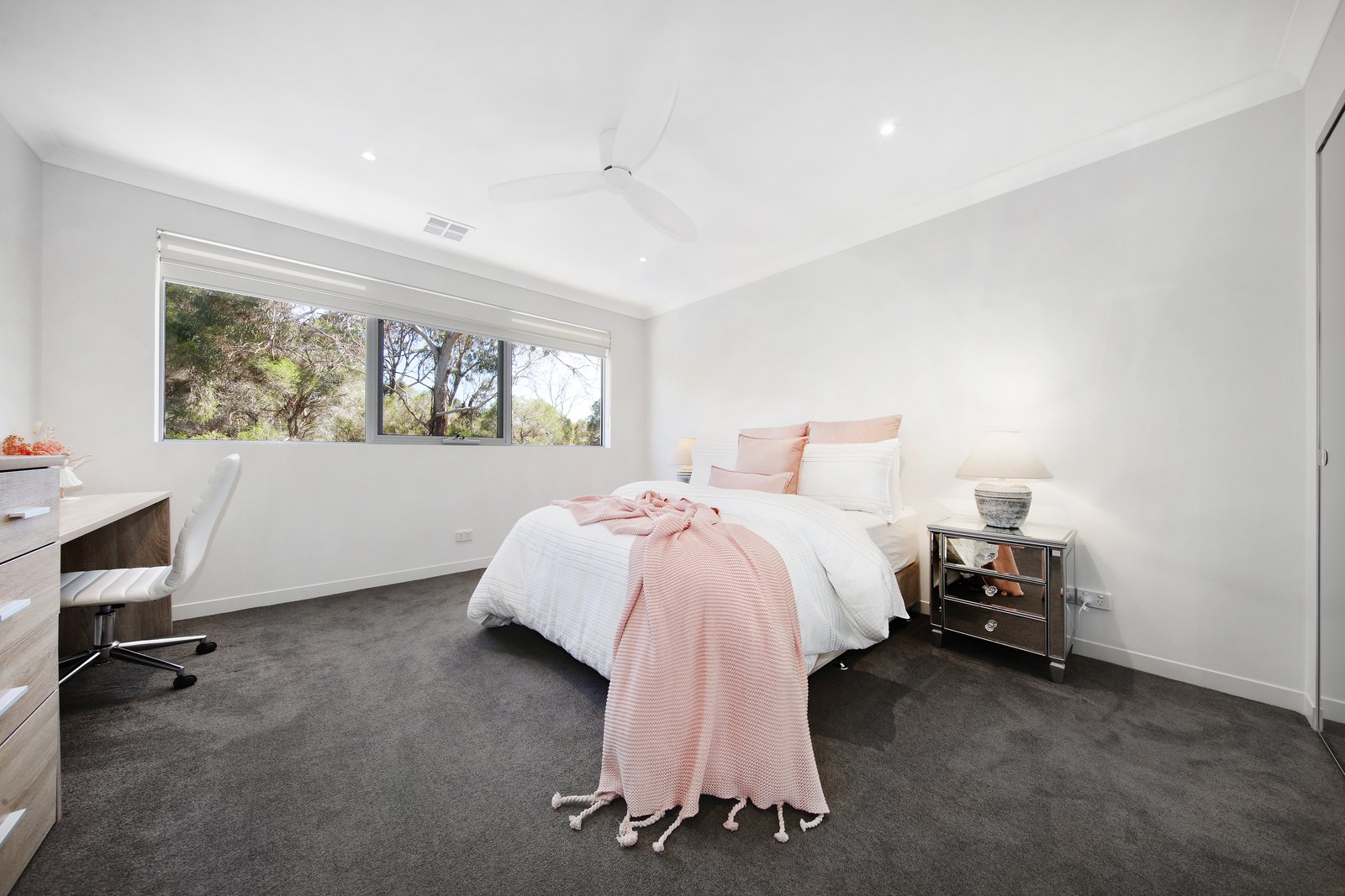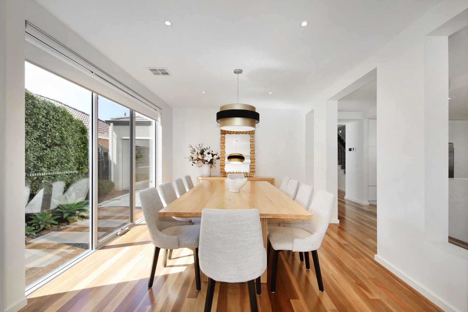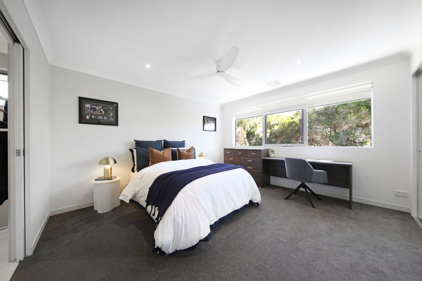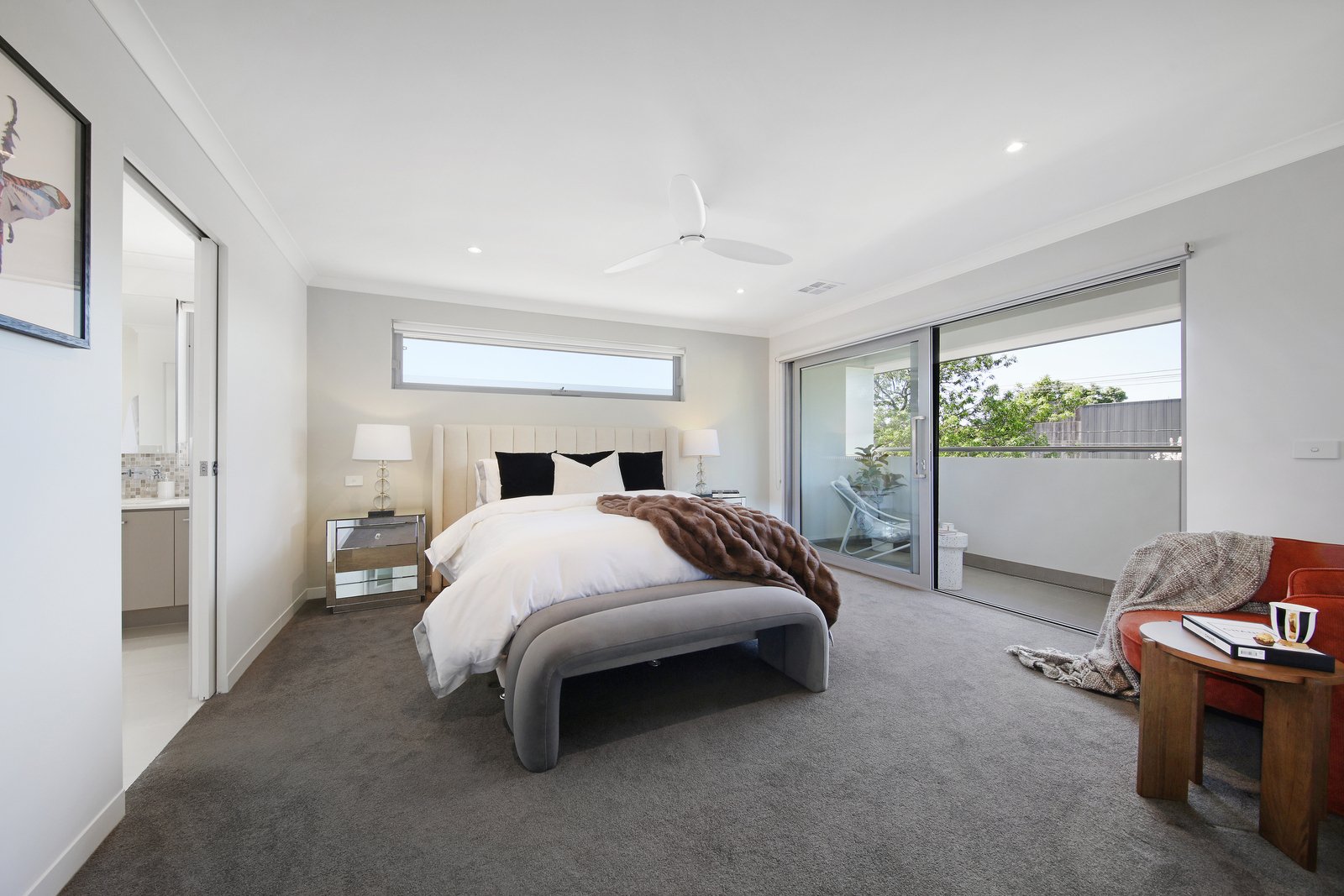 Crafted for a dynamic family life and multi-generational living, this triple-suite design steps up with a balconied parkside principal suite with true double ensuite (dual-vanity and double shower), elevates expectations to provide additional suites on each level to accommodate independent children, dependent in-laws and fortunate guests. Going above and beyond, there’s even a possible sixth bedroom (positioned as the perfect nursery) in a treetop home-office with views to Dendy Park.