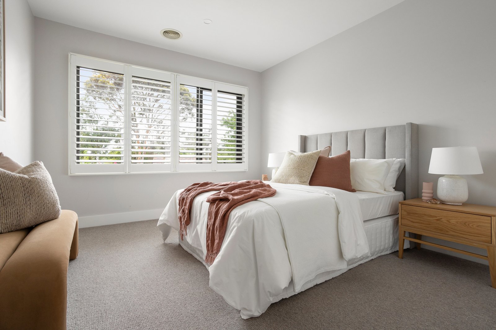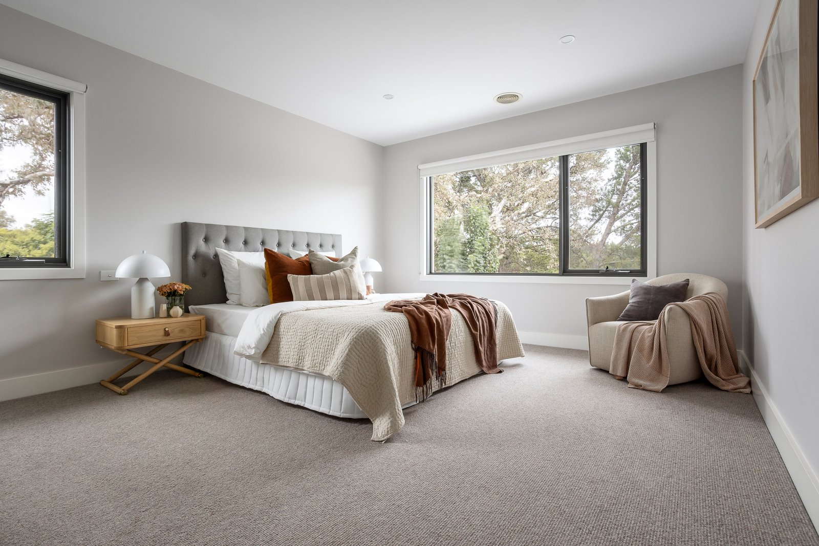 A convenient downstairs bedroom with walk in robe and en suite is matched upstairs by a generous second main bedroom with walk in robe and stylish en suite, two additional robed bedrooms, a designer bathroom with bath and family retreat. Just a short walk to Alamein and East Malvern stations, Ashburton Village, a range of great schools, Gardiner’s Creek, and Malvern Valley Golf course, it includes an alarm, video intercom, ducted heating/cooling, ducted vacuum, guest powder - room, laundry, garden lighting, irrigation, and internally accessed garage.