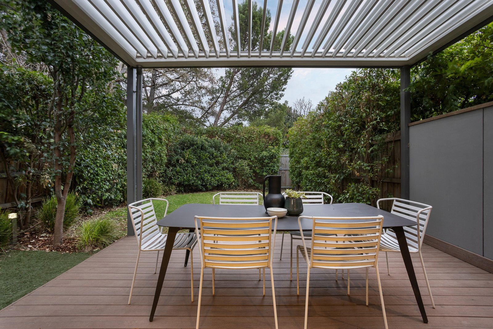 An inviting entrance hall featuring timber floors flows through to a gourmet kitchen appointed with Bosch appliances, stone benches, and a walk-in pantry. The exceptionally spacious open plan living and dining room extends out to a large Vergola covered deck, perfect for alfresco dining against the backdrop of a private leafy northwest garden with lawn area and a gate to the Anniversary Trail.