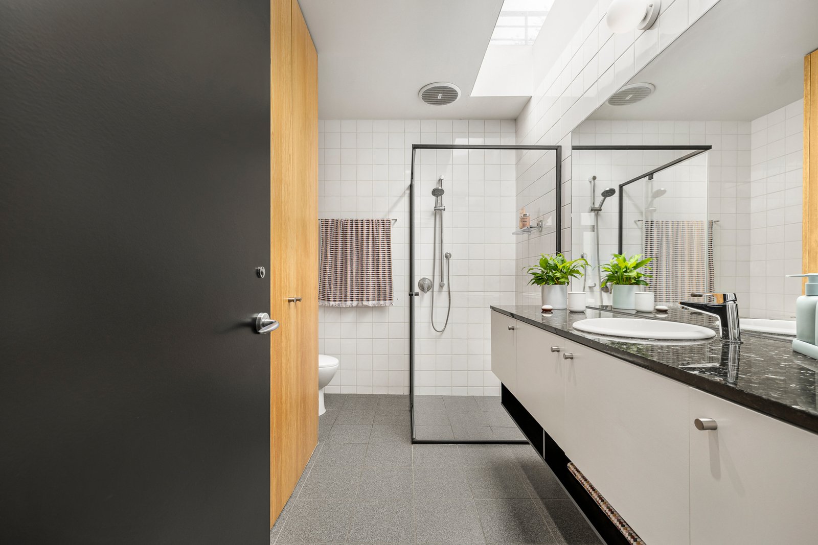 Upstairs, three generously scaled bedrooms with built-in robes are serviced by two sky-lit bathrooms, including main bedroom with ensuite.